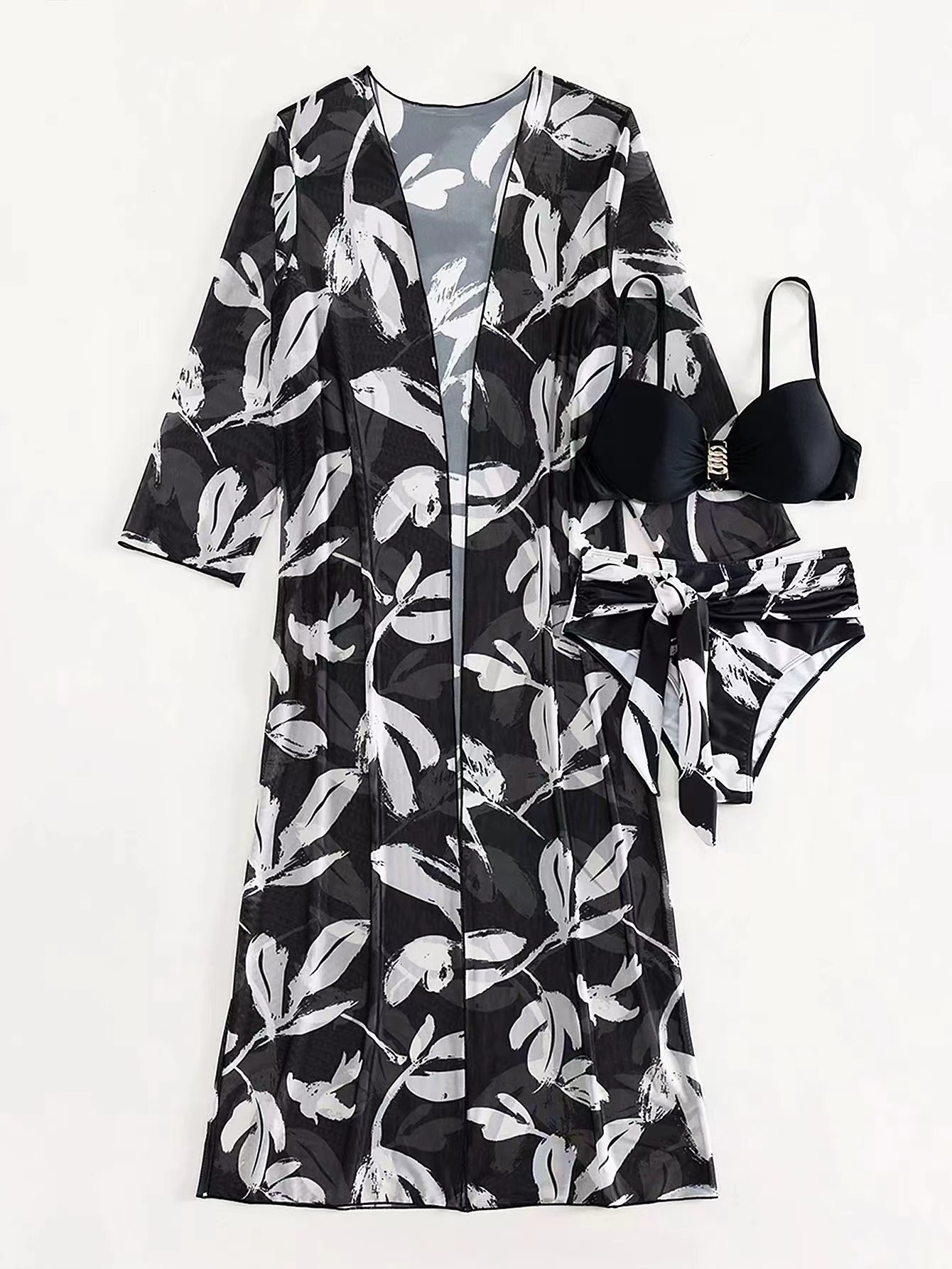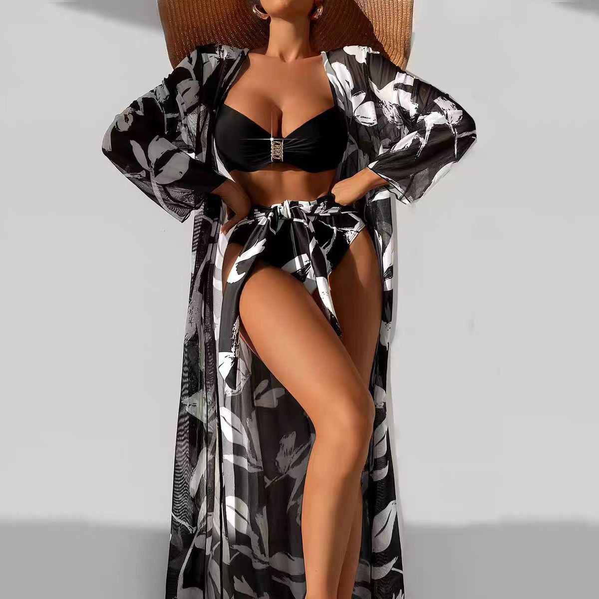 국경 간 수영복 3 피스 여성 비키니 긴 셔츠 높은 허리 대외 무역 새로운 2024 유럽 및 미국 수영복 분할 비키니