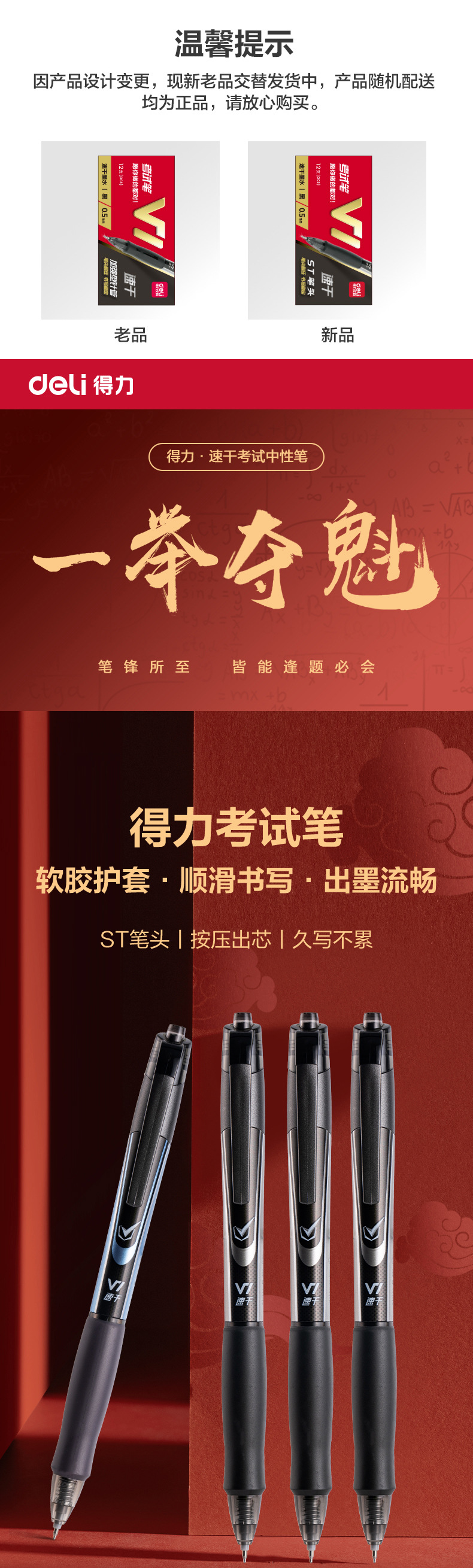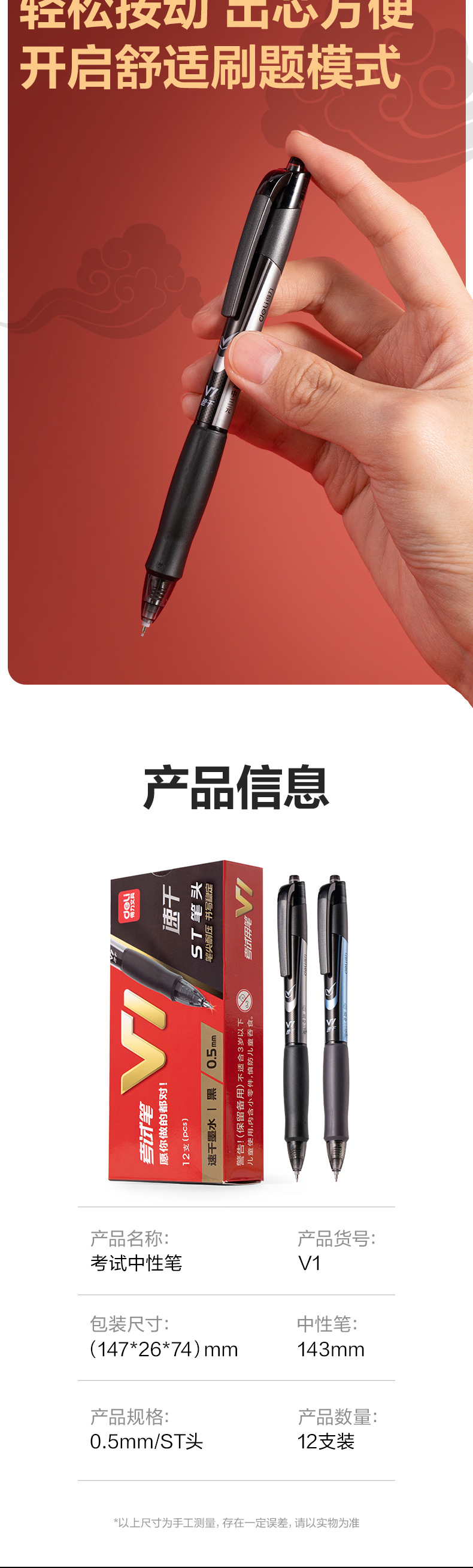 델리 V1 시험 특수 펜 블랙 젤 펜 프레스 빠른 건조 부드러운 0.5mm 강화 바늘 쓰기 펜스토어 가기