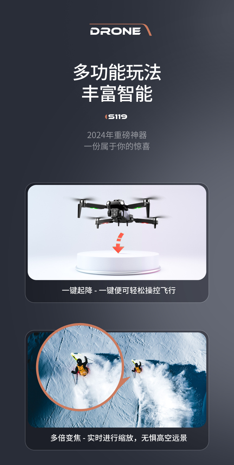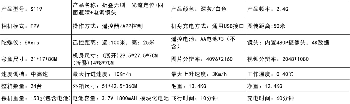 브러시리스 S119 UAV 4 측 장애물 회피 광학 흐름 포지셔닝 항공기 HD 전자 변조 카메라 4 축 항공기스토어 가기