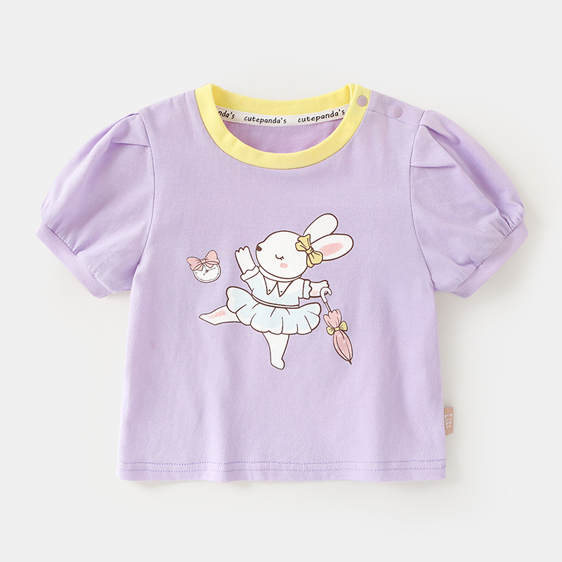카카 팬더 아기 옷 소녀 캐주얼 반팔 티셔츠 여름 옷 아기 소녀 어린이 여름 반팔 탑 유행