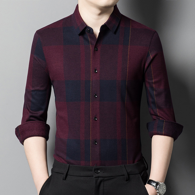 2024年秋季男装羊毛格子长袖衬衫中老年高端休闲保暖免烫抗皱衬衣스토어 가기