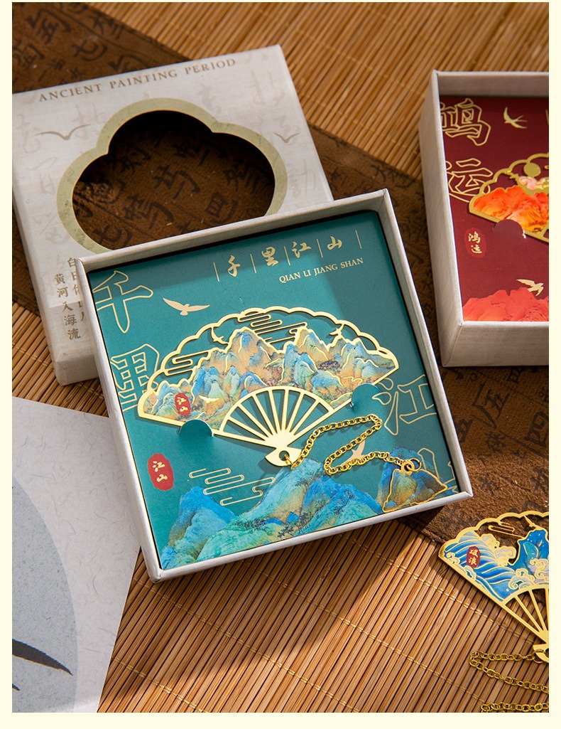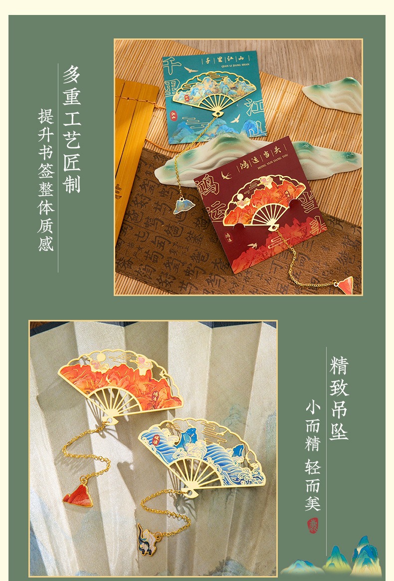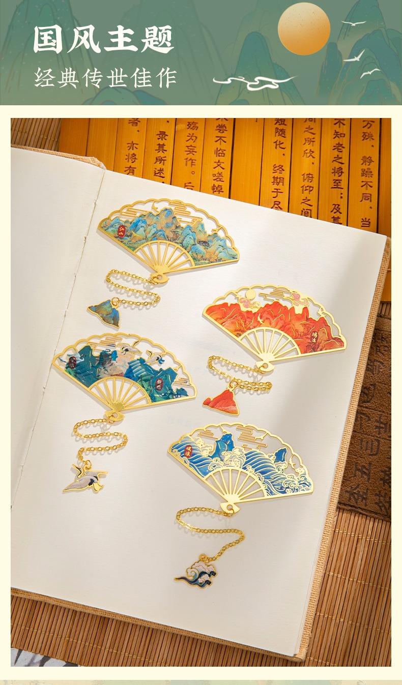 Shanhai Xuyu 시리즈 북마킹 컨트리 타이드 골동품 금속 팬 북 학생 축제 영감 상 선물 북마크