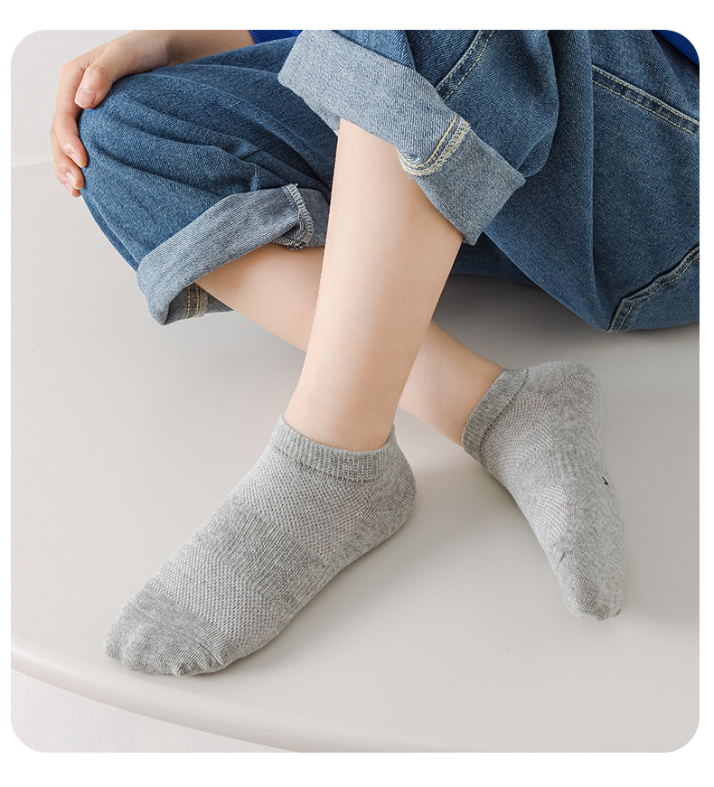 2024 새로운 어린이 양말 도매 순수한 흰색 학생 양말 큰 어린이 스포츠 보트 양말 봄과 여름 메쉬 어린이 양말