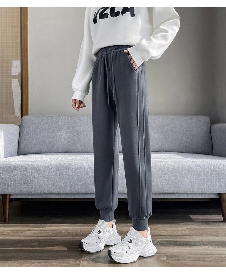 스포츠 바지 여성 봄과 가을 2024 새로운 스타일 스웨트 팬츠 캐주얼 슬림 핏 가을 및 겨울 발 발가락 할란 방풍 바지