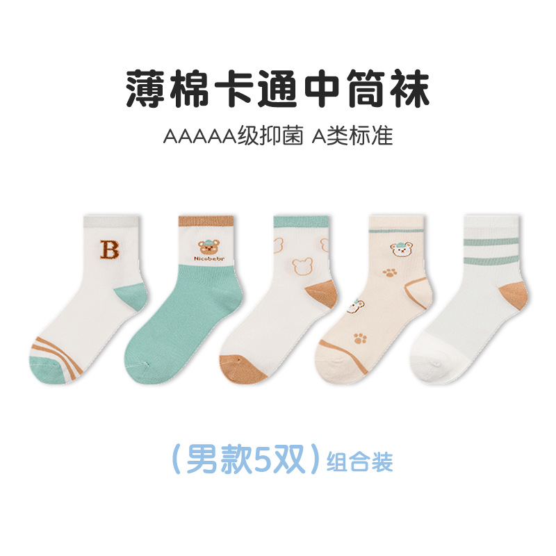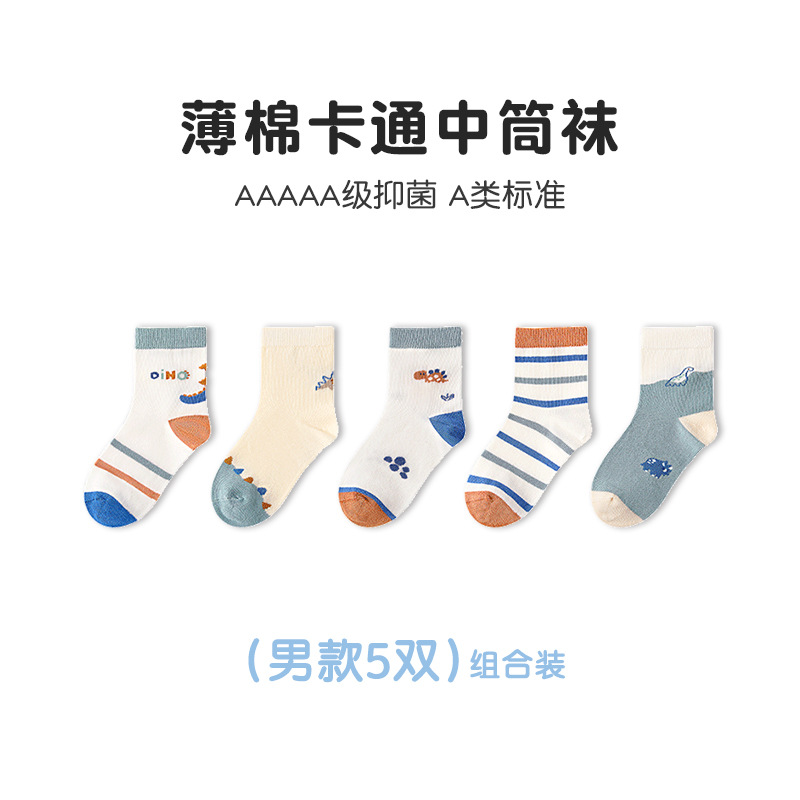 Tangram Boys 양말 봄과 여름 얇은 만화 중간 튜브 양말 소년 및 학생을위한 중소형 어린이 얇은 면 양말스토어 가기