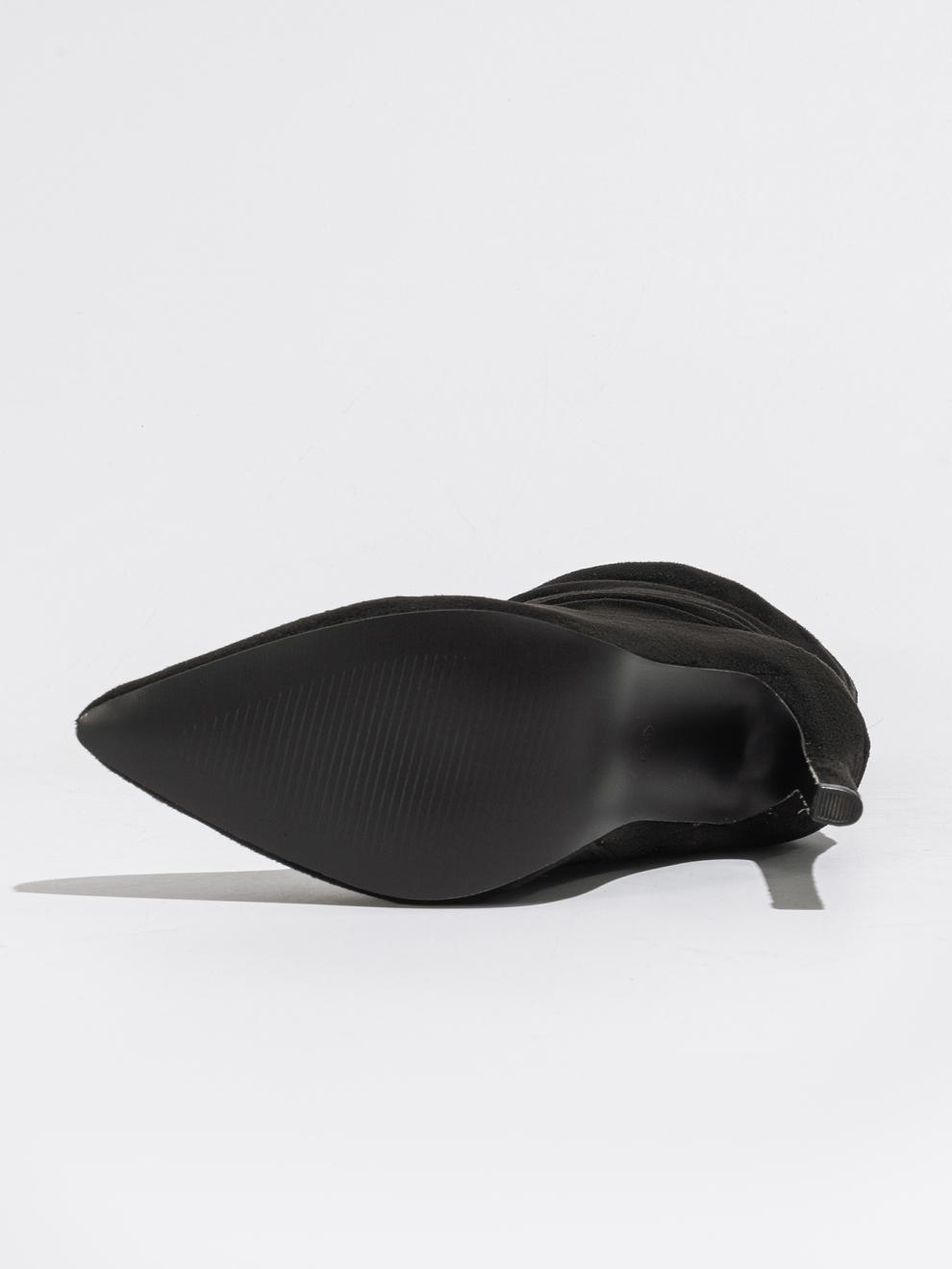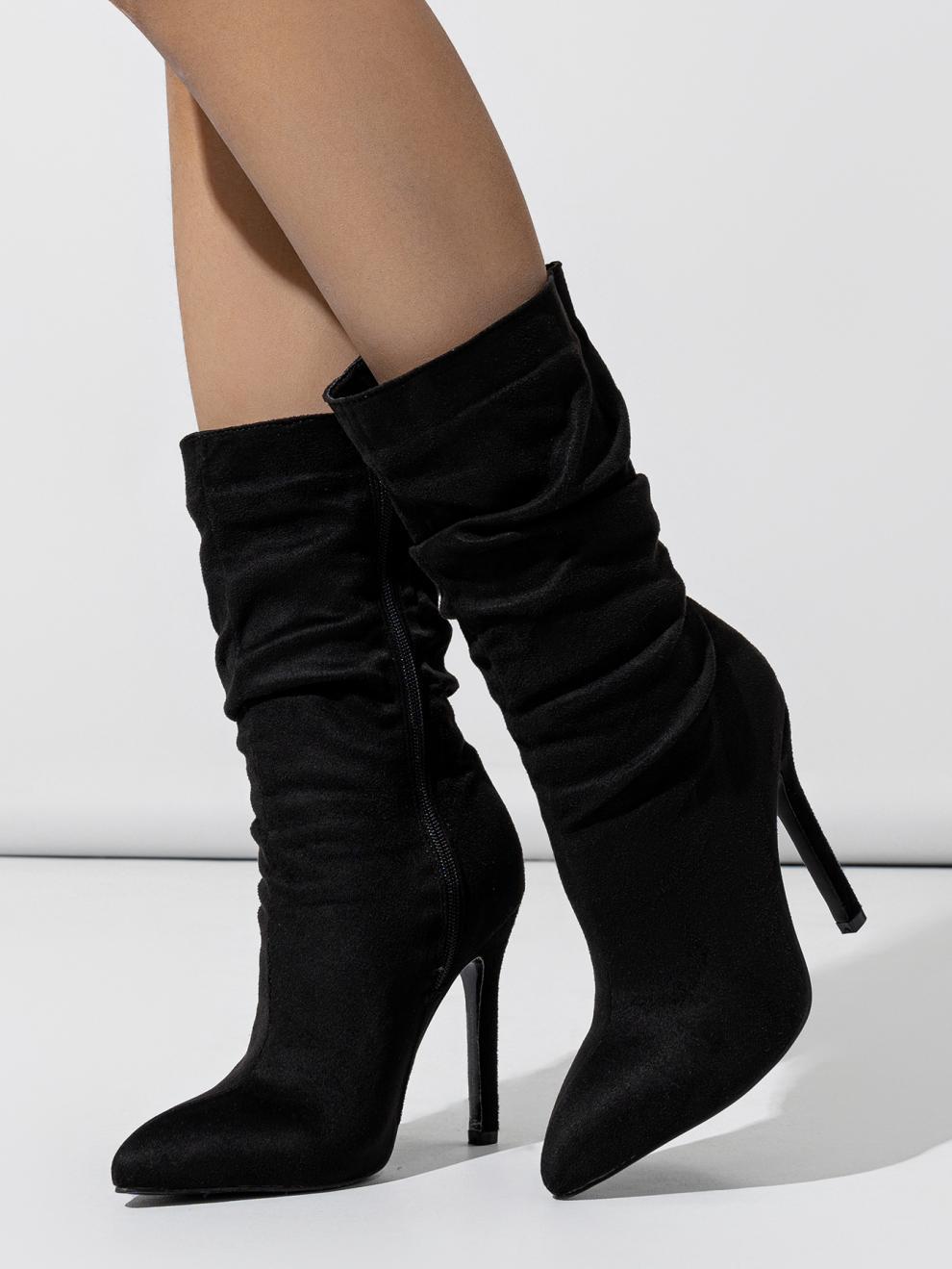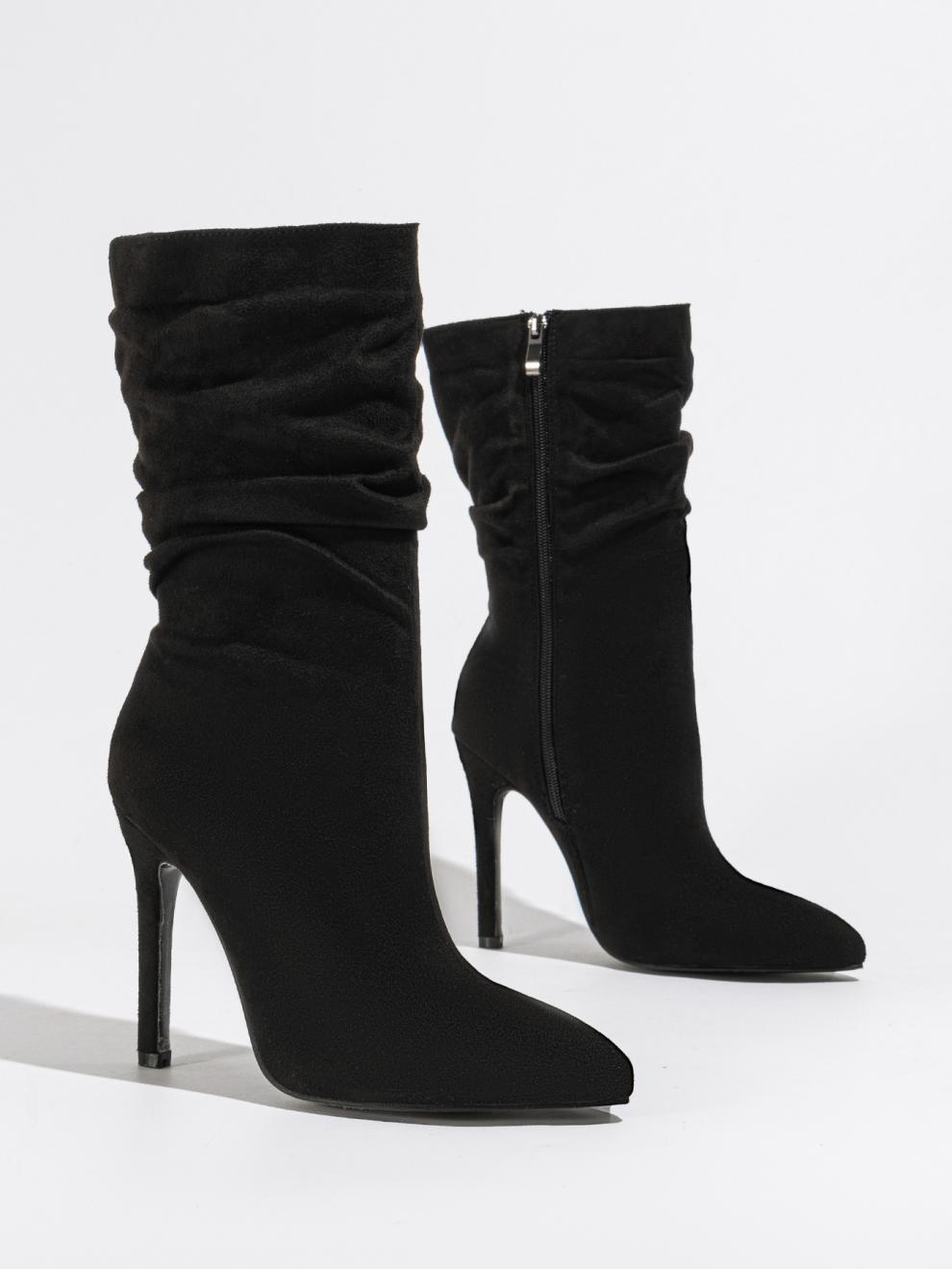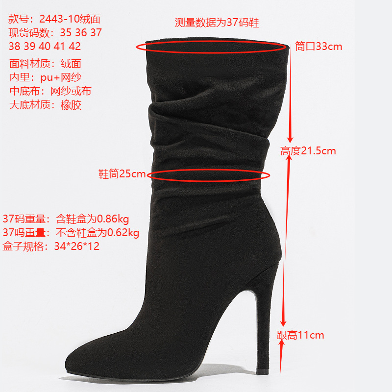 2024 새로운 스타일의 천연 주름 스틸레토 힐 뾰족한 발가락 패션 올 매치 스트리트 미드 송아지 부츠 35-42 플러스 사이즈 대외 무역 여성 발목 부츠스토어 가기