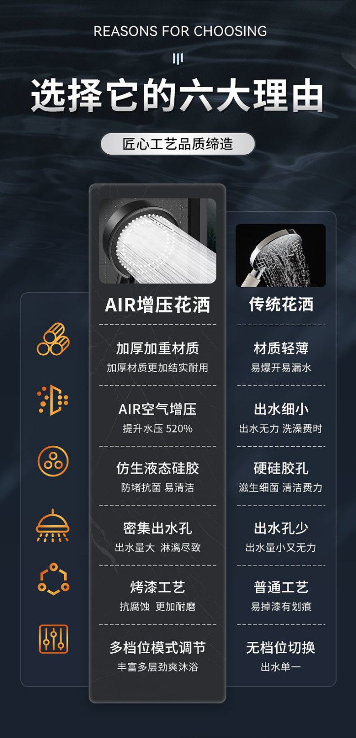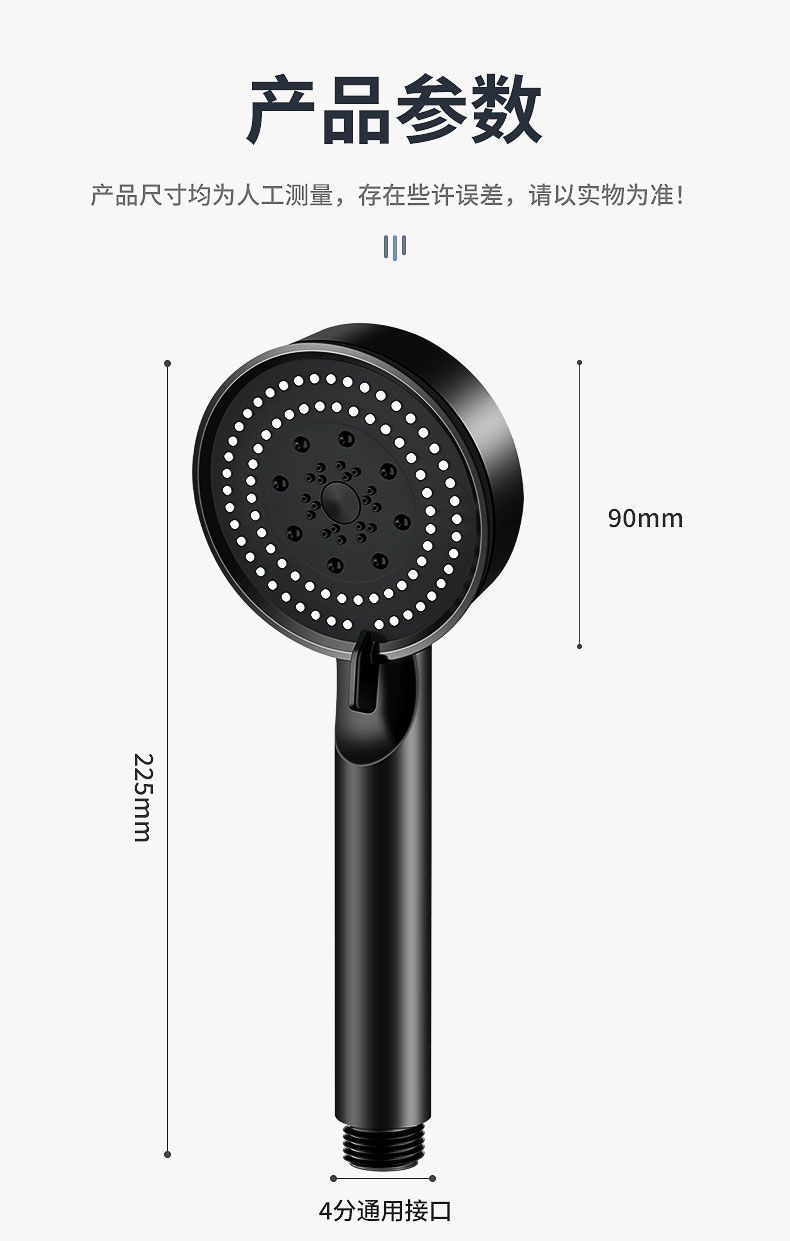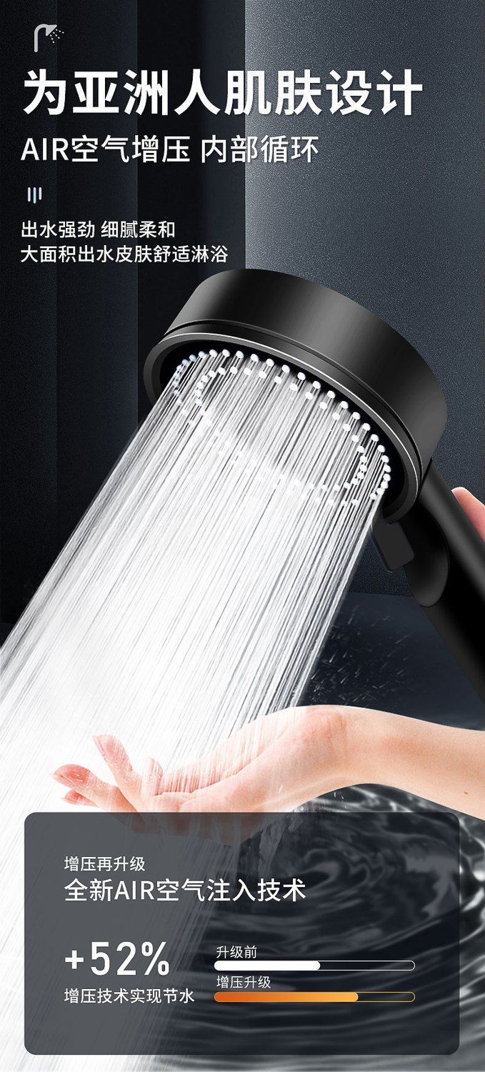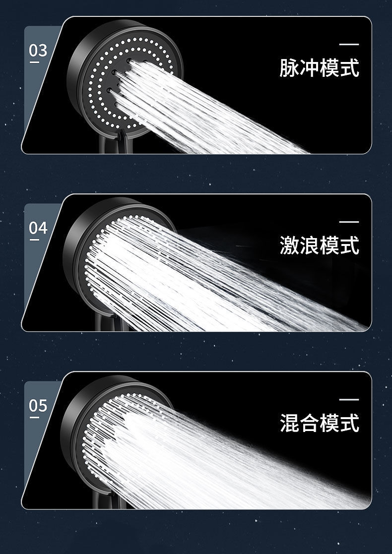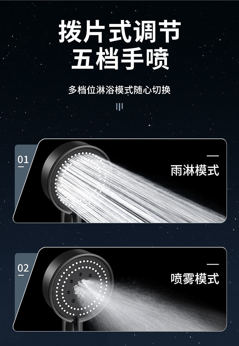 정밀하게 포장된 인터넷 연예인 블랙 워리어 가압 샤워 헤드 5단 워터 호스 브래킷 가압 샤워 헤드스토어 가기