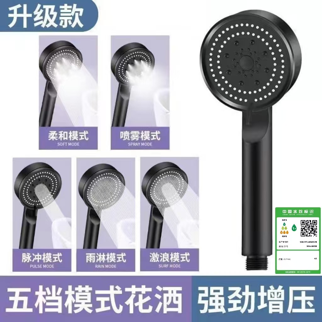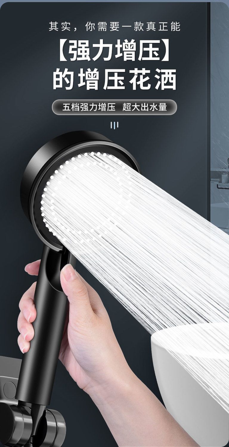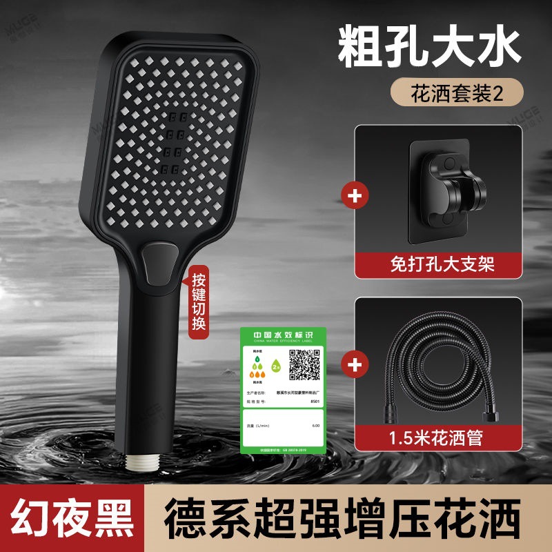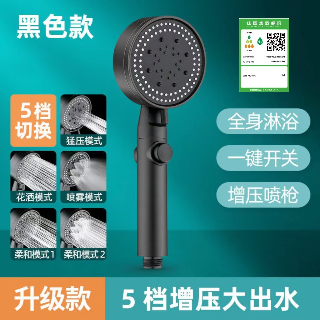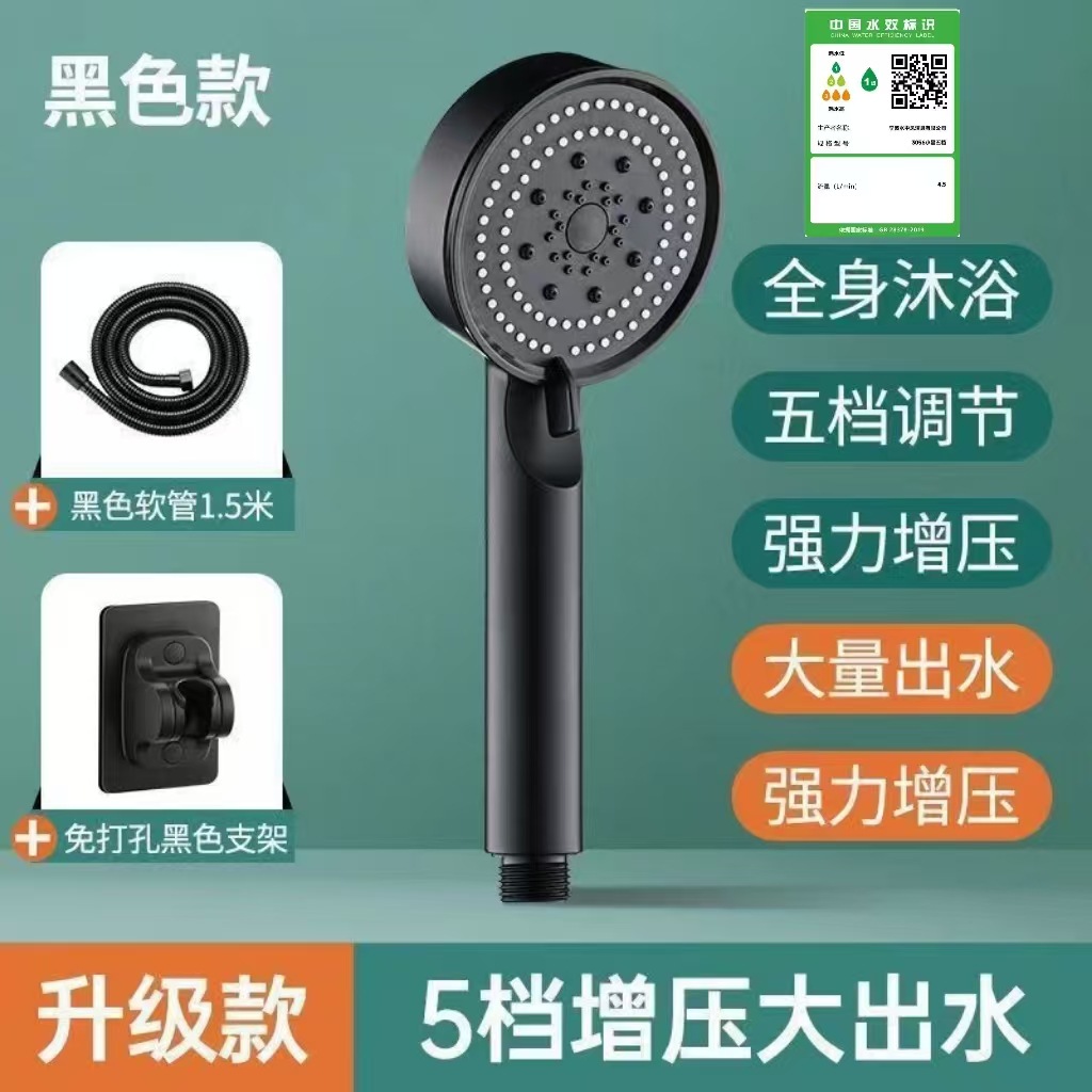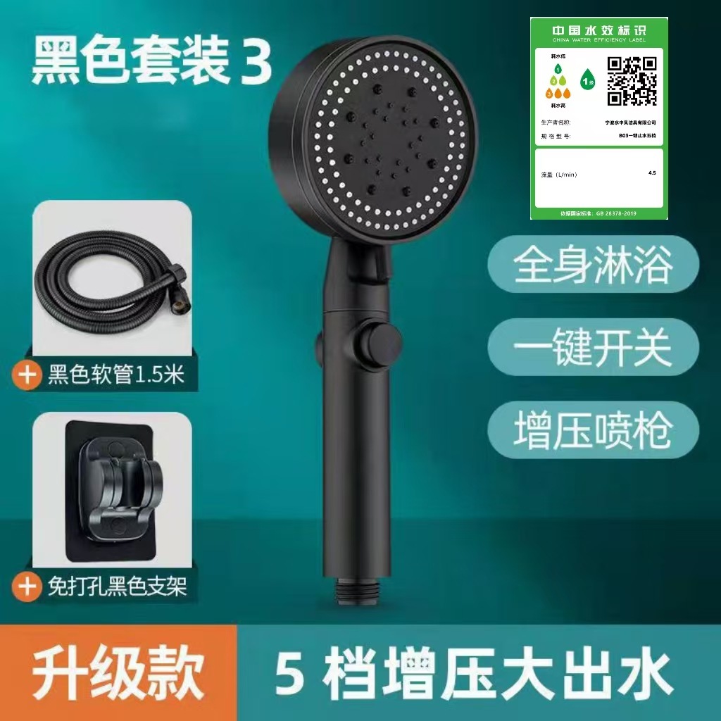 정밀하게 포장된 인터넷 연예인 블랙 워리어 가압 샤워 헤드 5단 워터 호스 브래킷 가압 샤워 헤드