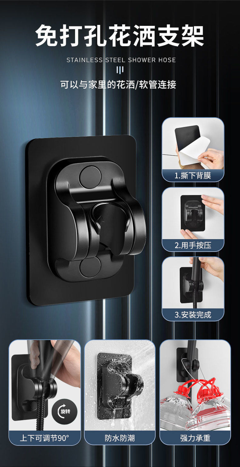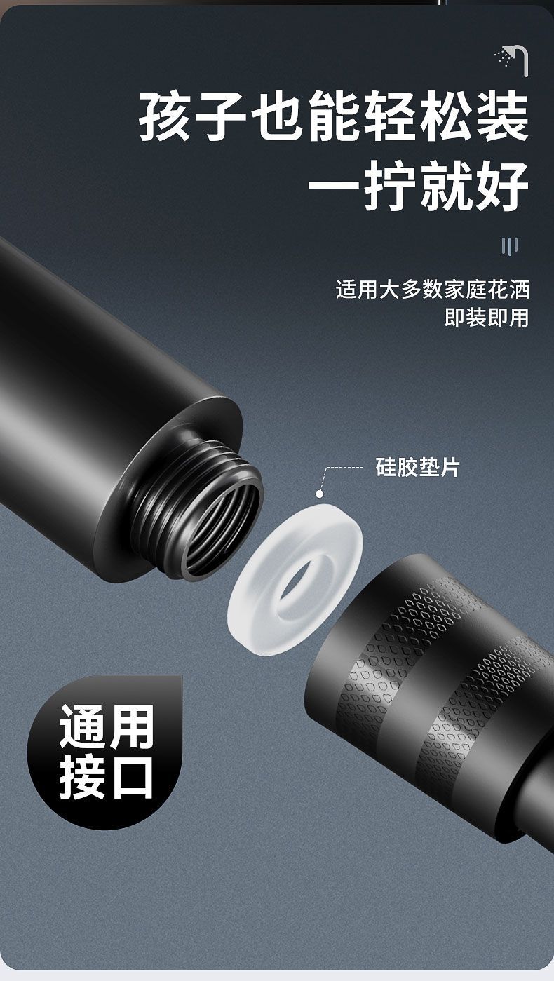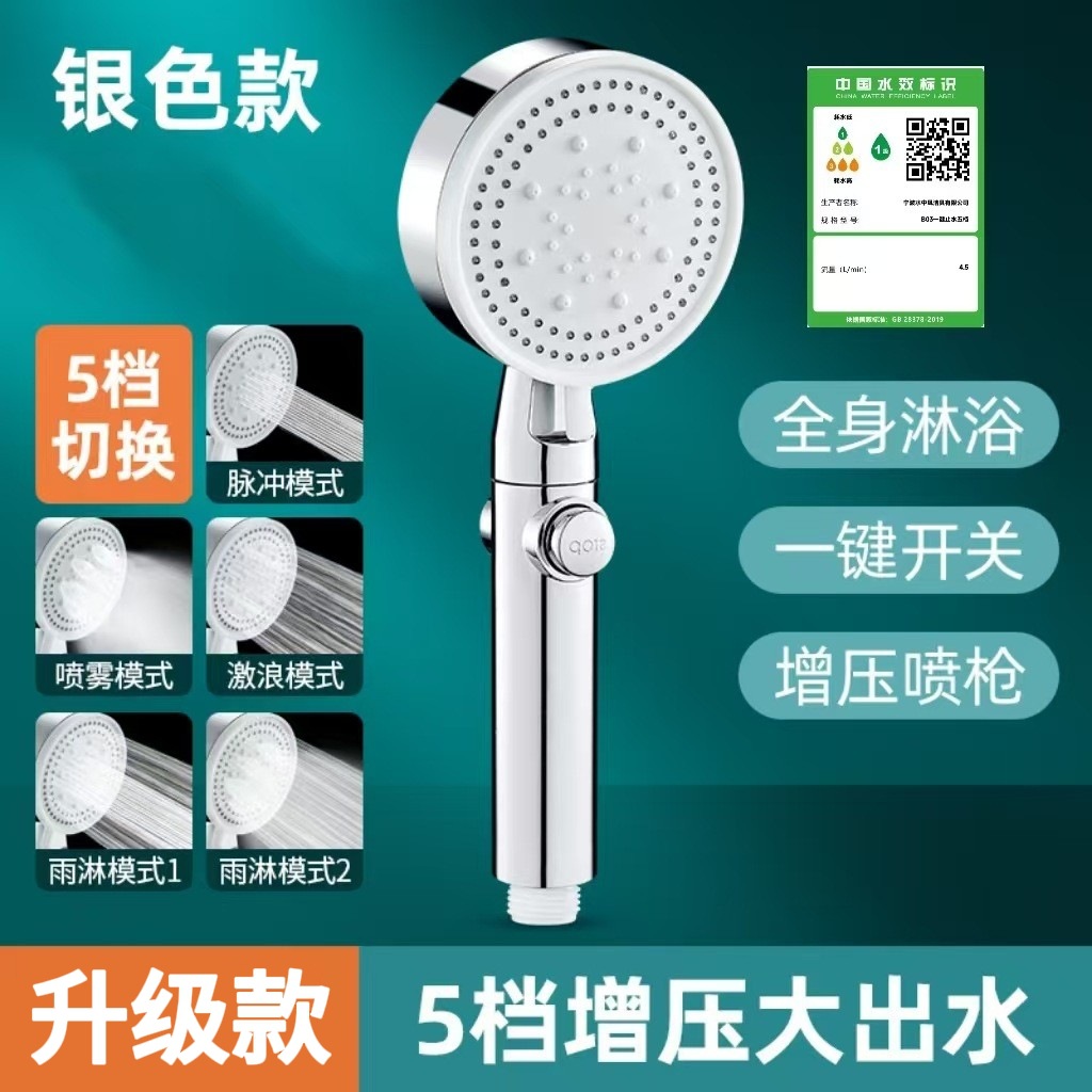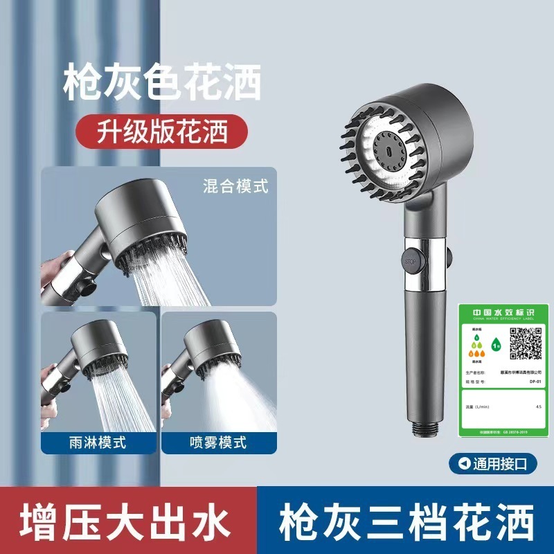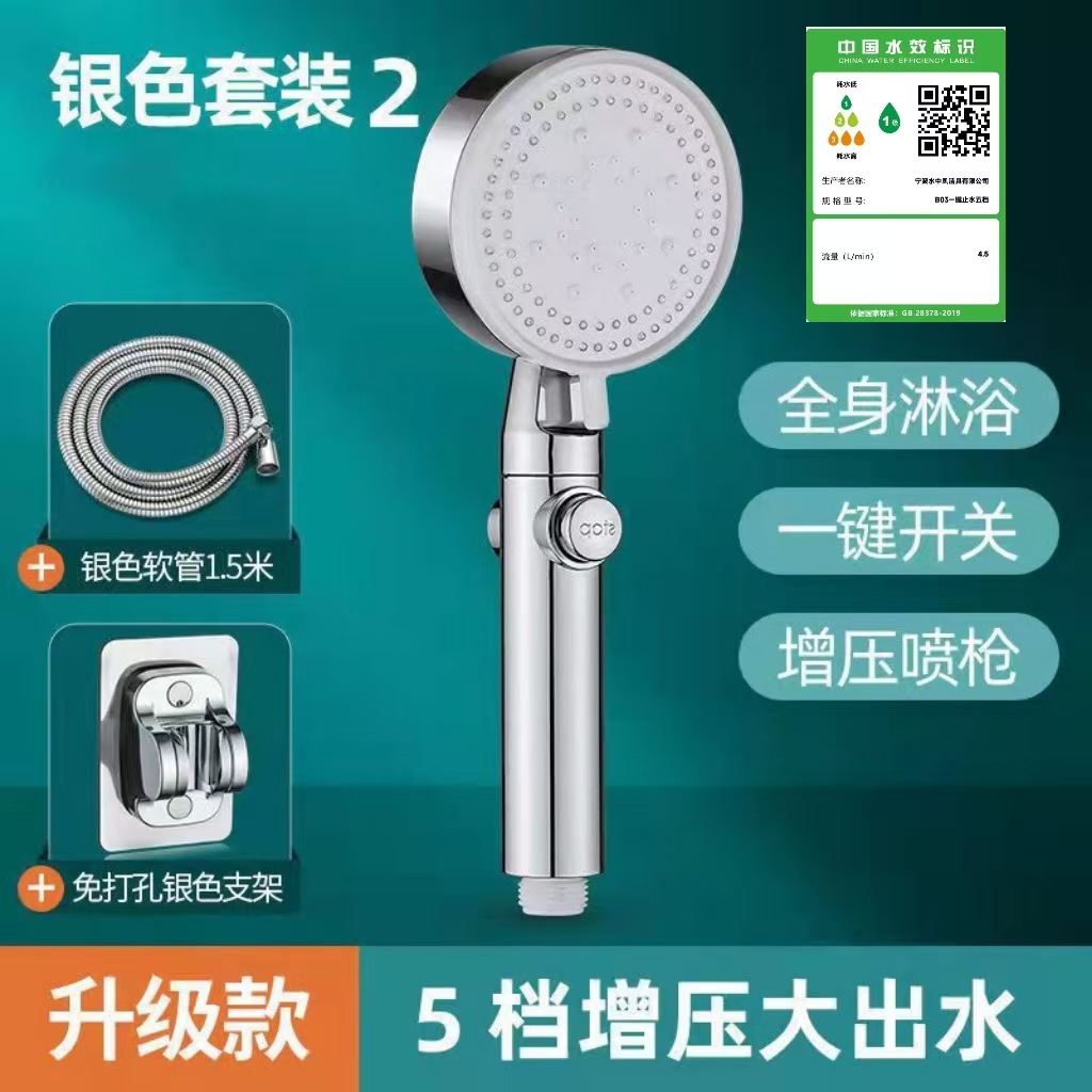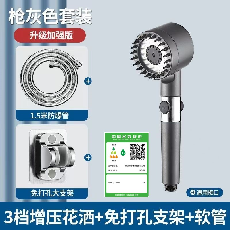 정밀하게 포장된 인터넷 연예인 블랙 워리어 가압 샤워 헤드 5단 워터 호스 브래킷 가압 샤워 헤드
