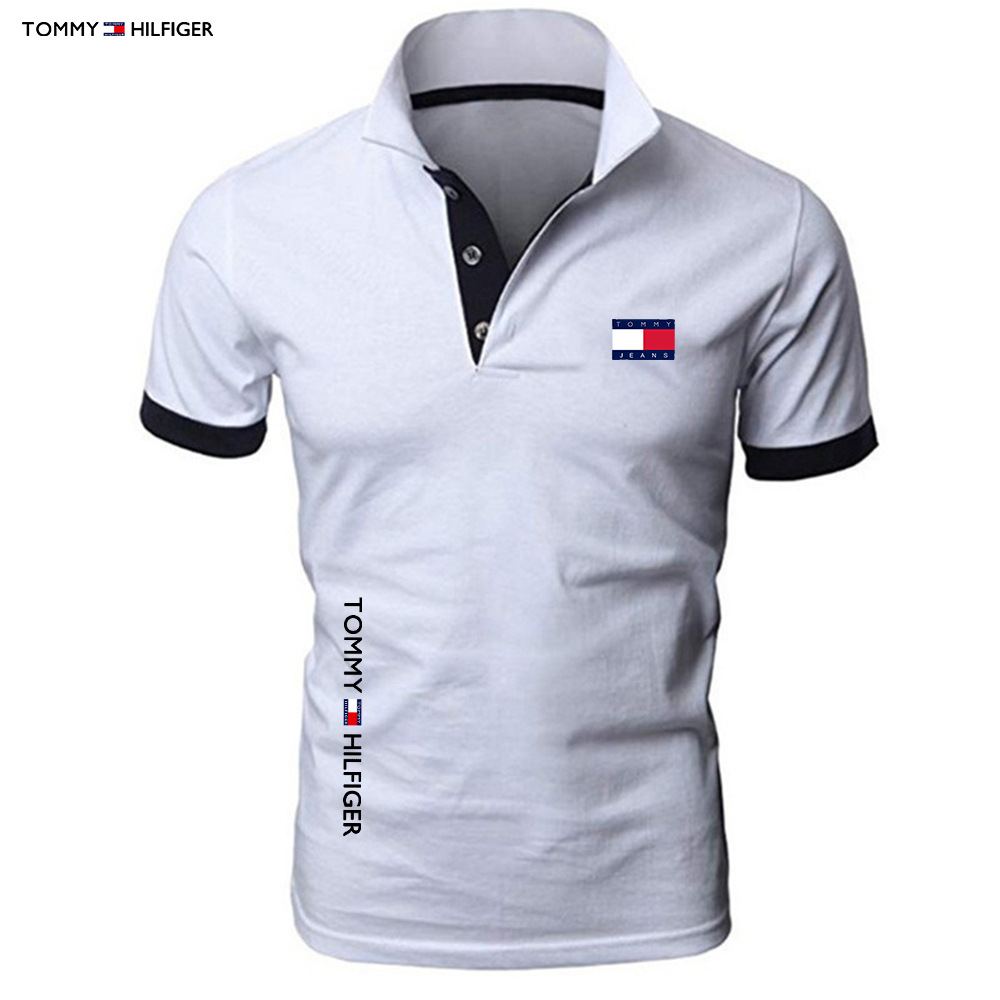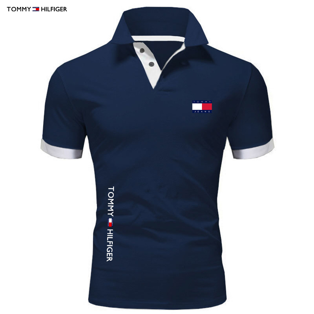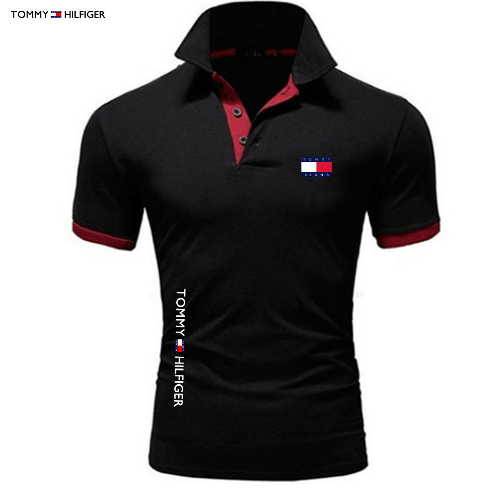국경 간 여름 남자 폴로 셔츠 옷깃 반팔 골프 레저 스포츠 폴로 셔츠 티셔츠 대비 색상 재고스토어 가기
