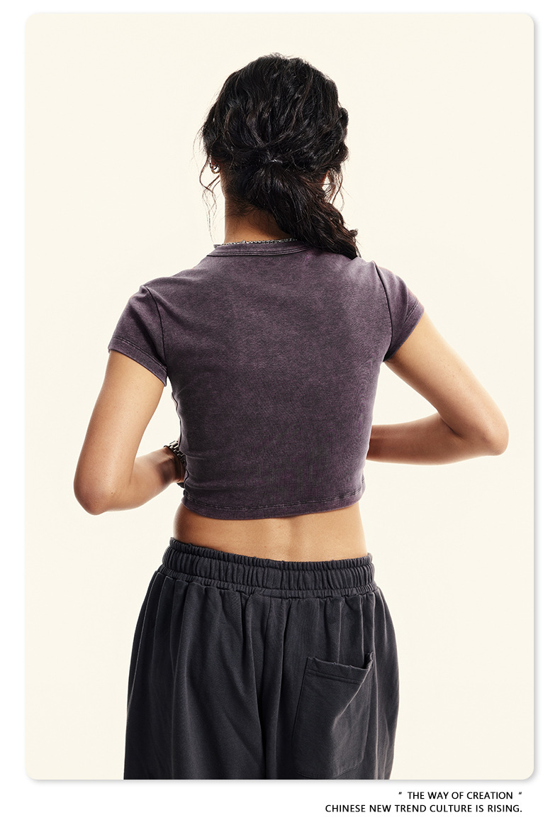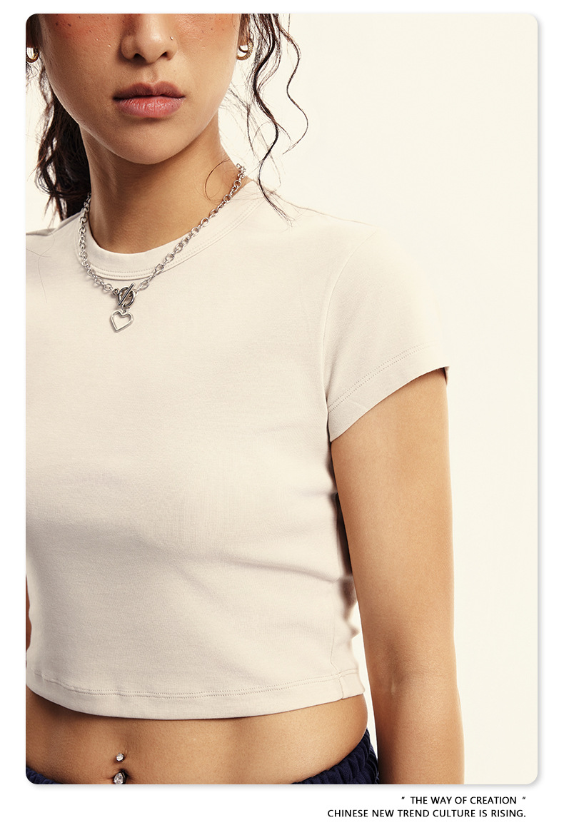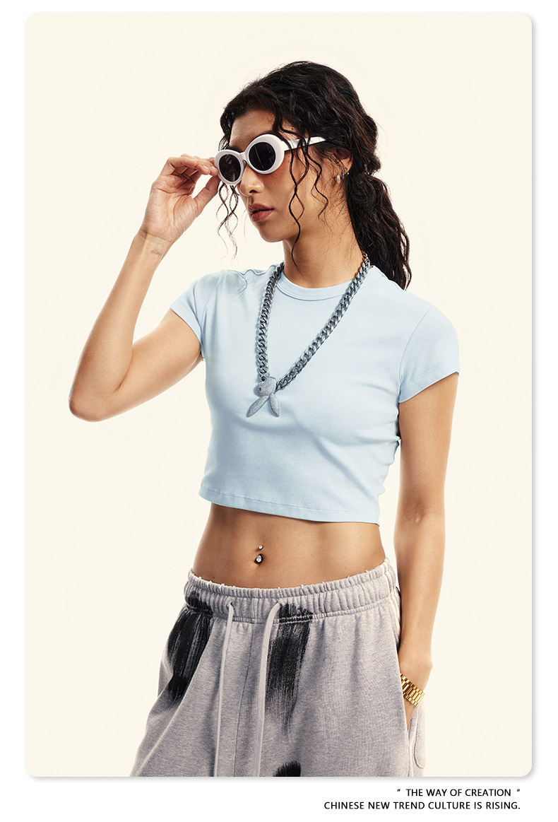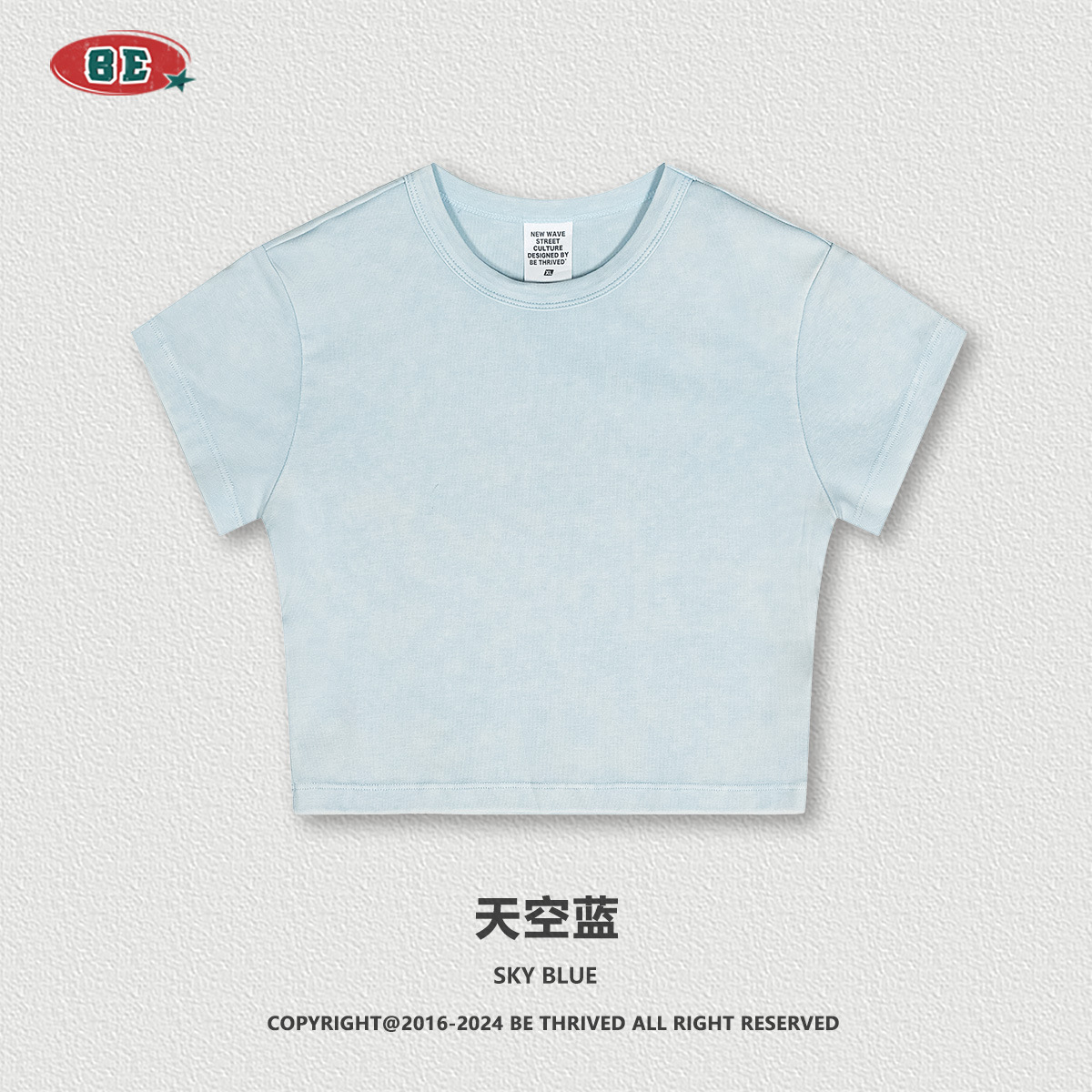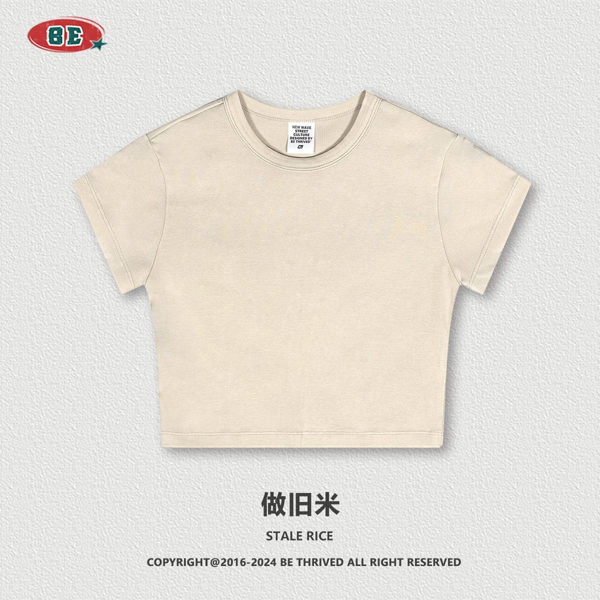 BE 여성 의류 2025 봄, 여름 배꼽 누출 여성 의류 bm 씻어 오른쪽 어깨 짧은 핫 소녀 풀오버 반팔 티셔츠 여성상의스토어 가기
