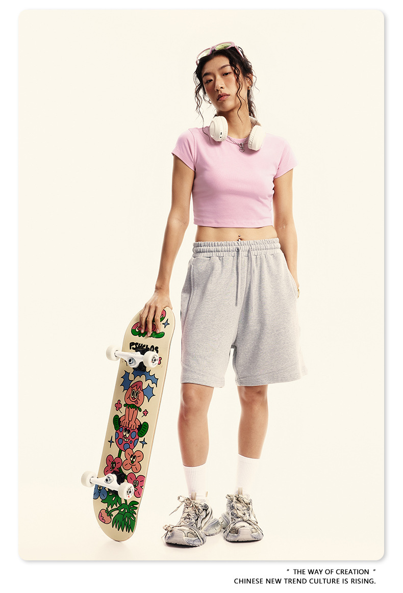 BE 여성 의류 2025 봄, 여름 배꼽 누출 여성 의류 bm 씻어 오른쪽 어깨 짧은 핫 소녀 풀오버 반팔 티셔츠 여성상의