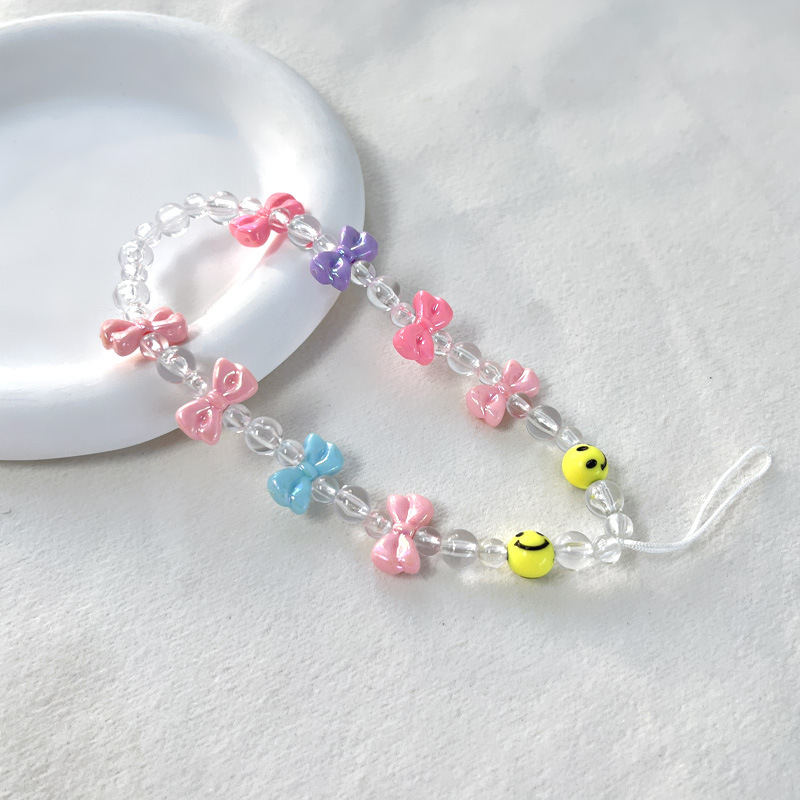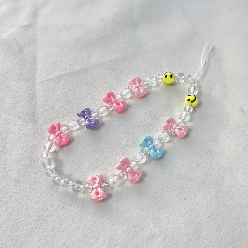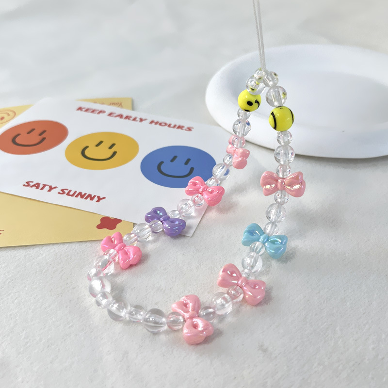 컬러 활 휴대 전화 체인 귀여운 노란색 웃는 수제 구슬 diy 휴대 전화 쉘 보석 펜던트 도매