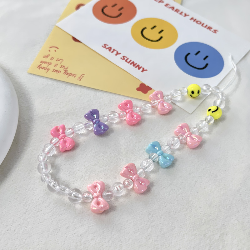 컬러 활 휴대 전화 체인 귀여운 노란색 웃는 수제 구슬 diy 휴대 전화 쉘 보석 펜던트 도매스토어 가기