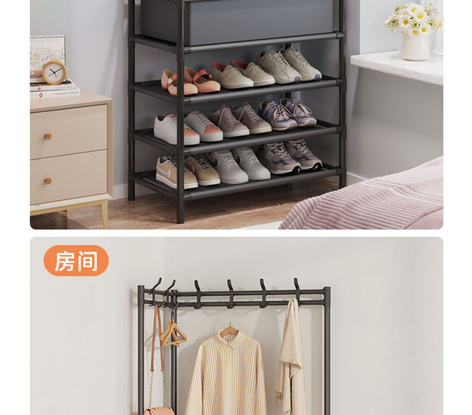 코트 랙 신발 랙 통합 바닥 코너 간단한 기숙사 홈 침실 옷걸이 다기능 보관 유물