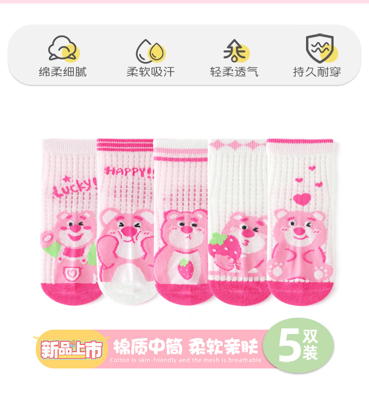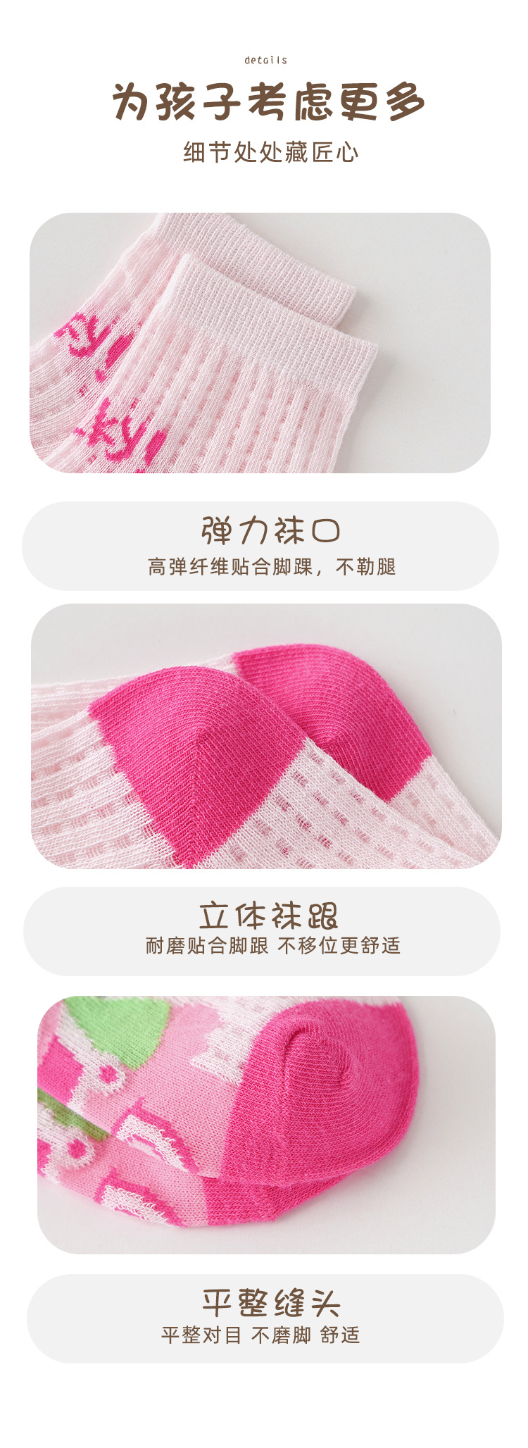 2024敏榴女童袜子夏季薄款中大童透气棉袜卡通粉红熊女孩潮袜短袜