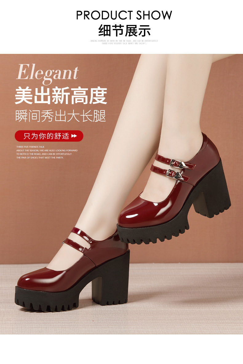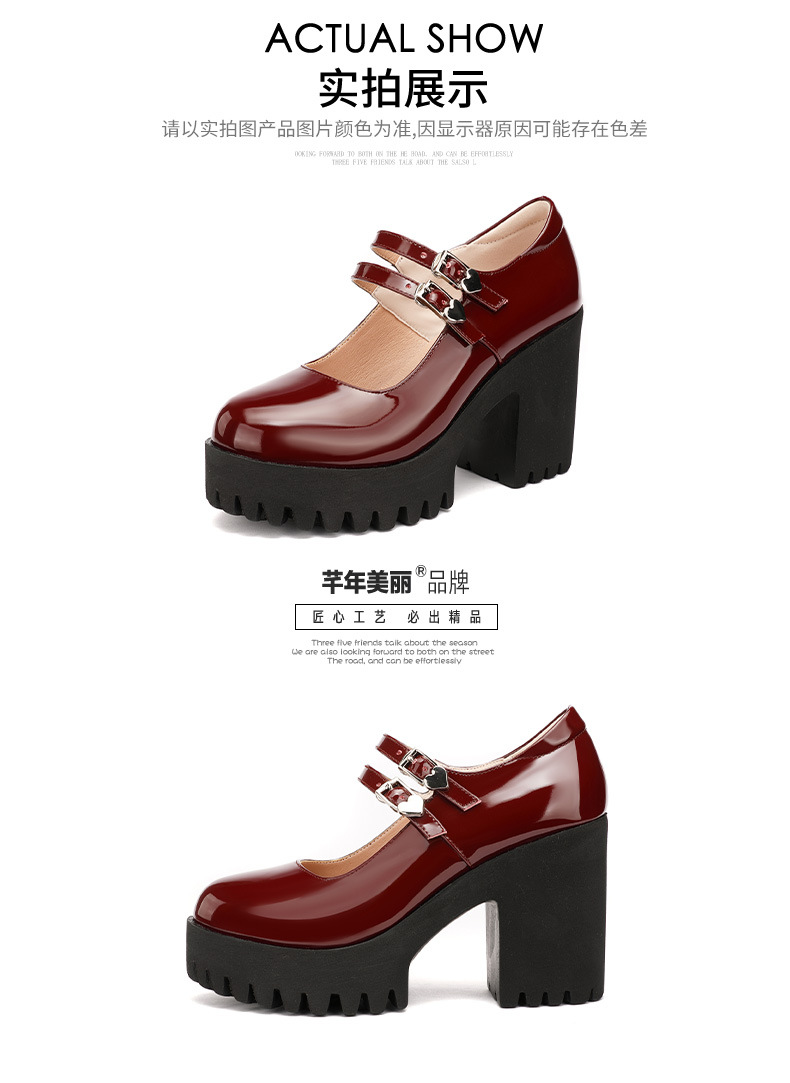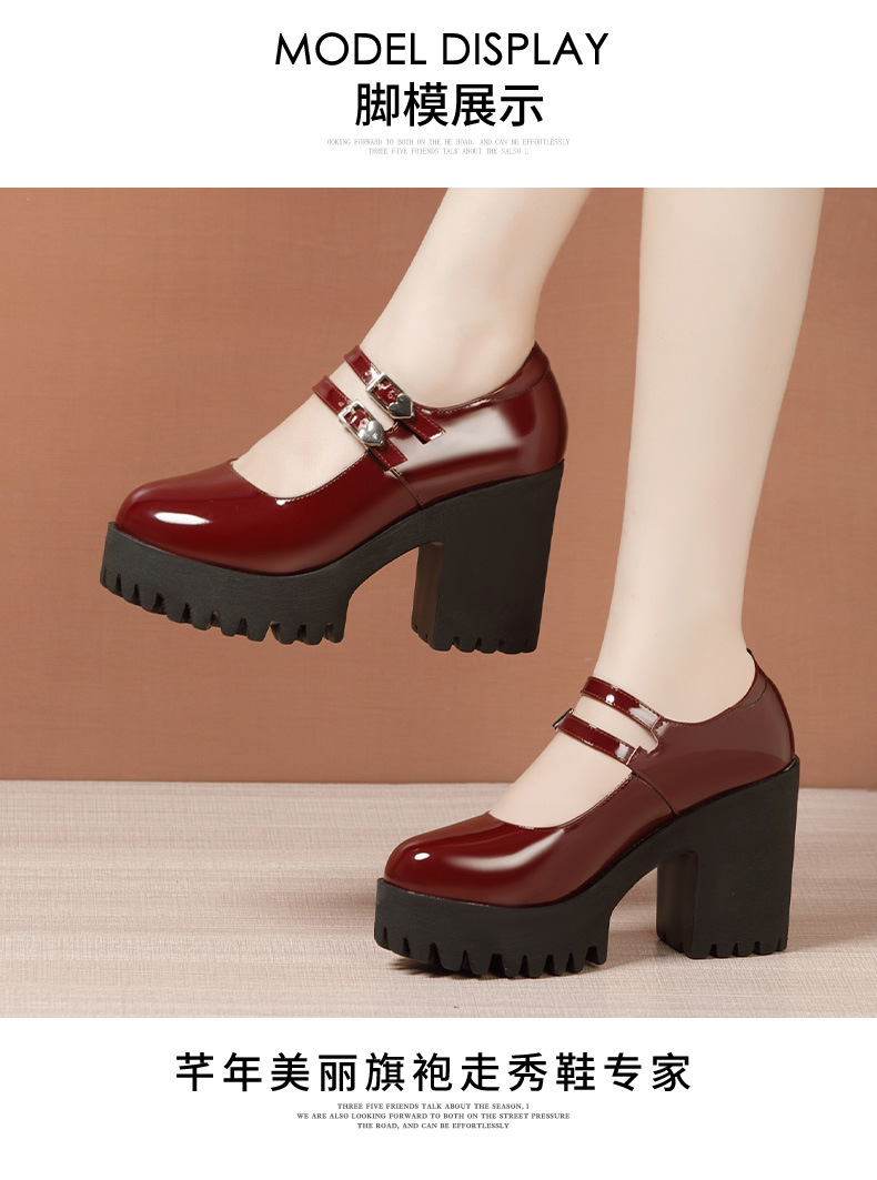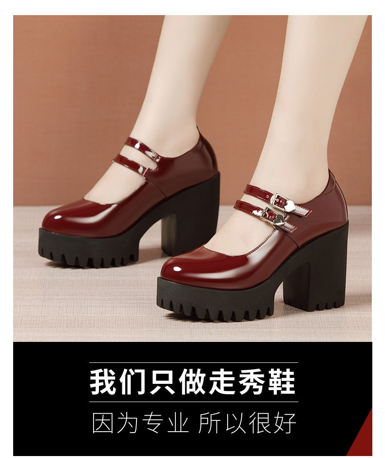 청삼 모델 캣워크 하이힐 신발 여성 플랫폼 둥근 발가락 플러스 사이즈 특허 가죽 두꺼운 뒤꿈치 올 매치 부드러운 바닥 가죽 신발스토어 가기