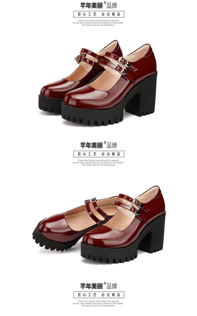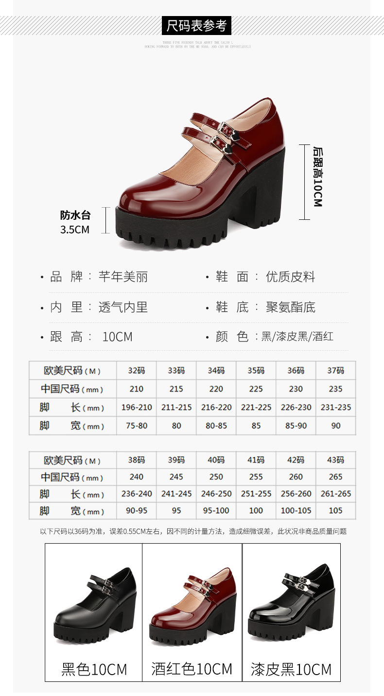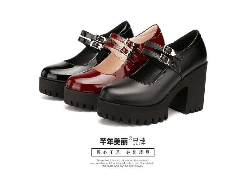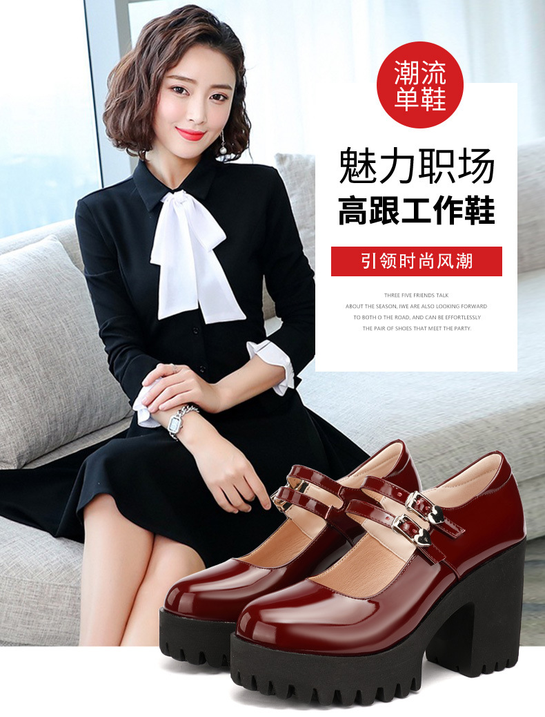 청삼 모델 캣워크 하이힐 신발 여성 플랫폼 둥근 발가락 플러스 사이즈 특허 가죽 두꺼운 뒤꿈치 올 매치 부드러운 바닥 가죽 신발스토어 가기