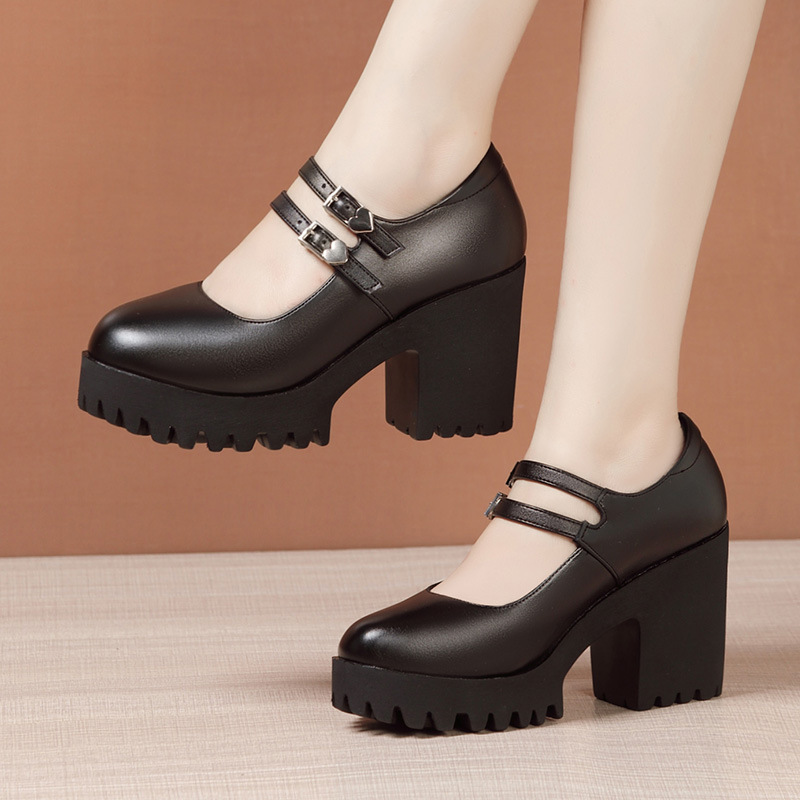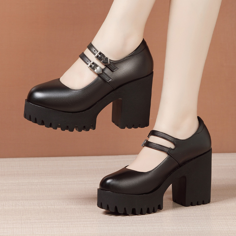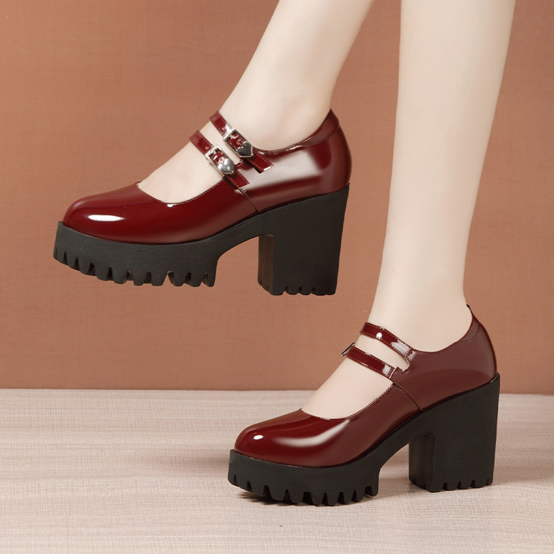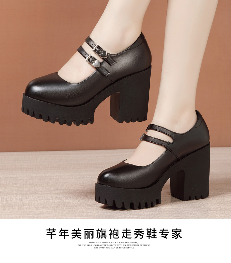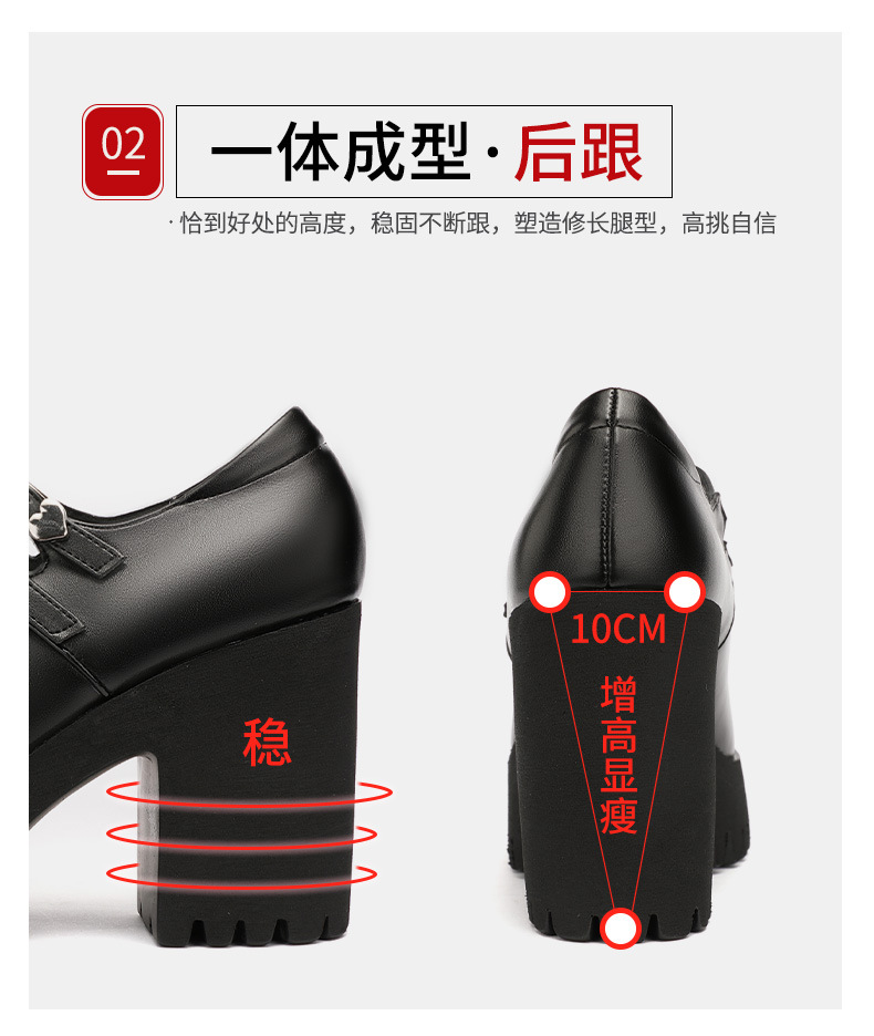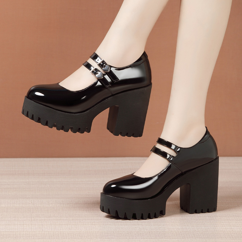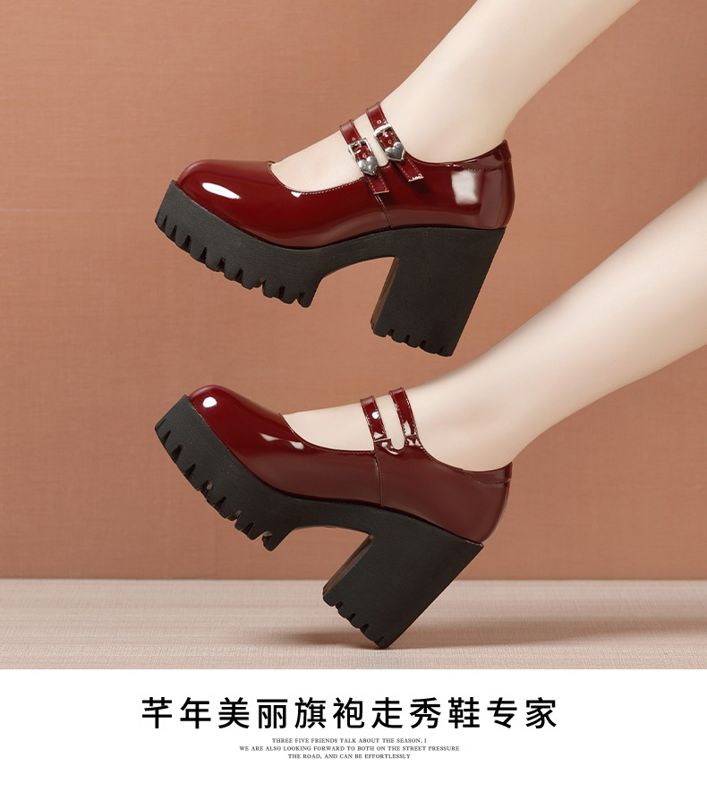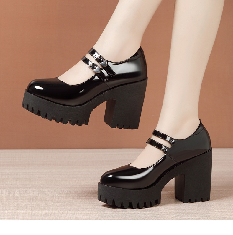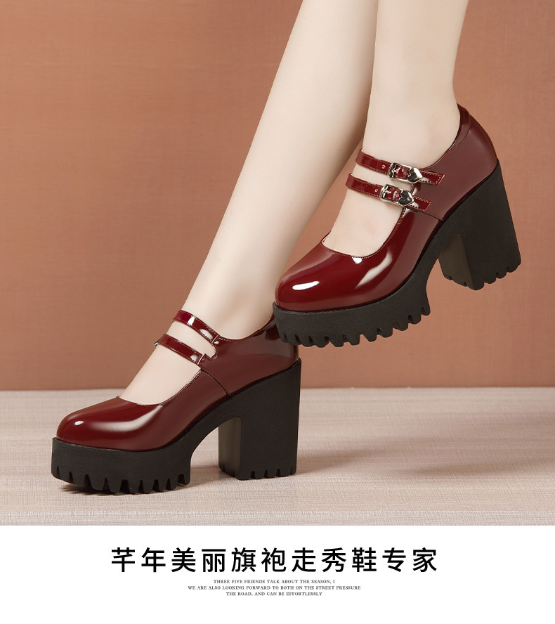 청삼 모델 캣워크 하이힐 신발 여성 플랫폼 둥근 발가락 플러스 사이즈 특허 가죽 두꺼운 뒤꿈치 올 매치 부드러운 바닥 가죽 신발