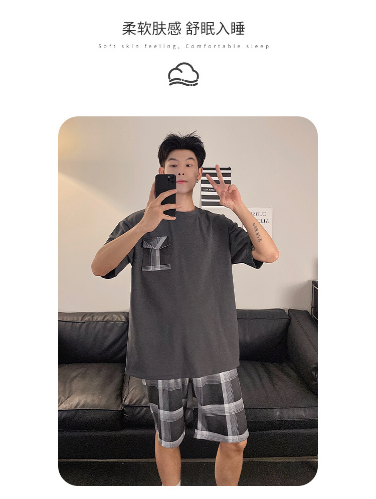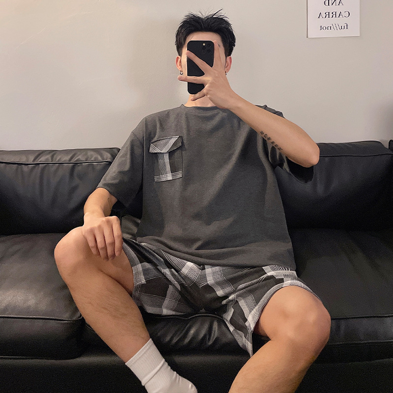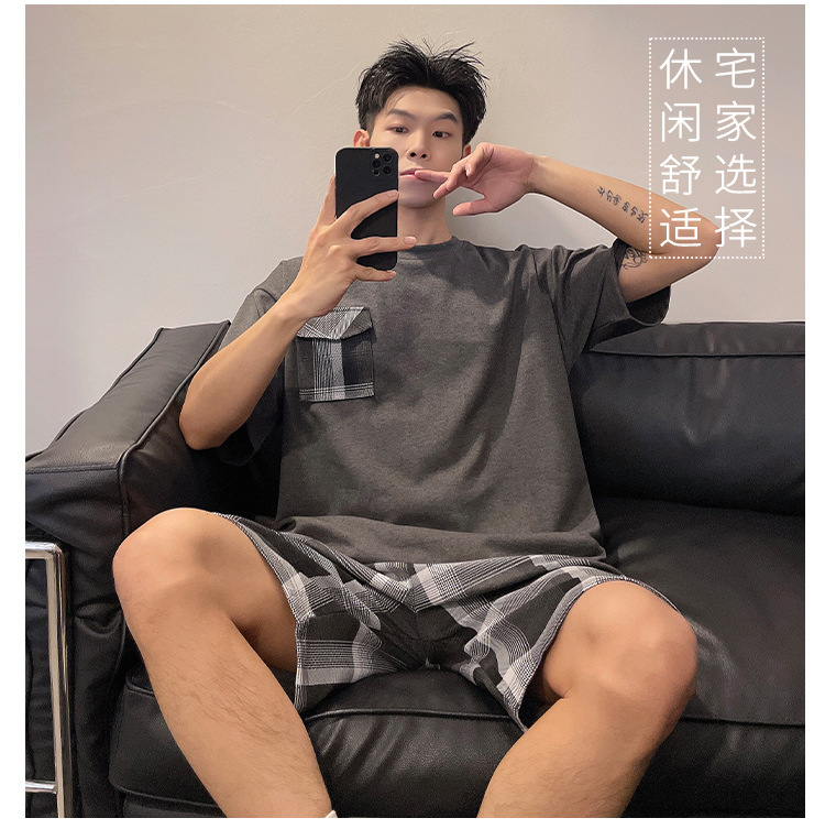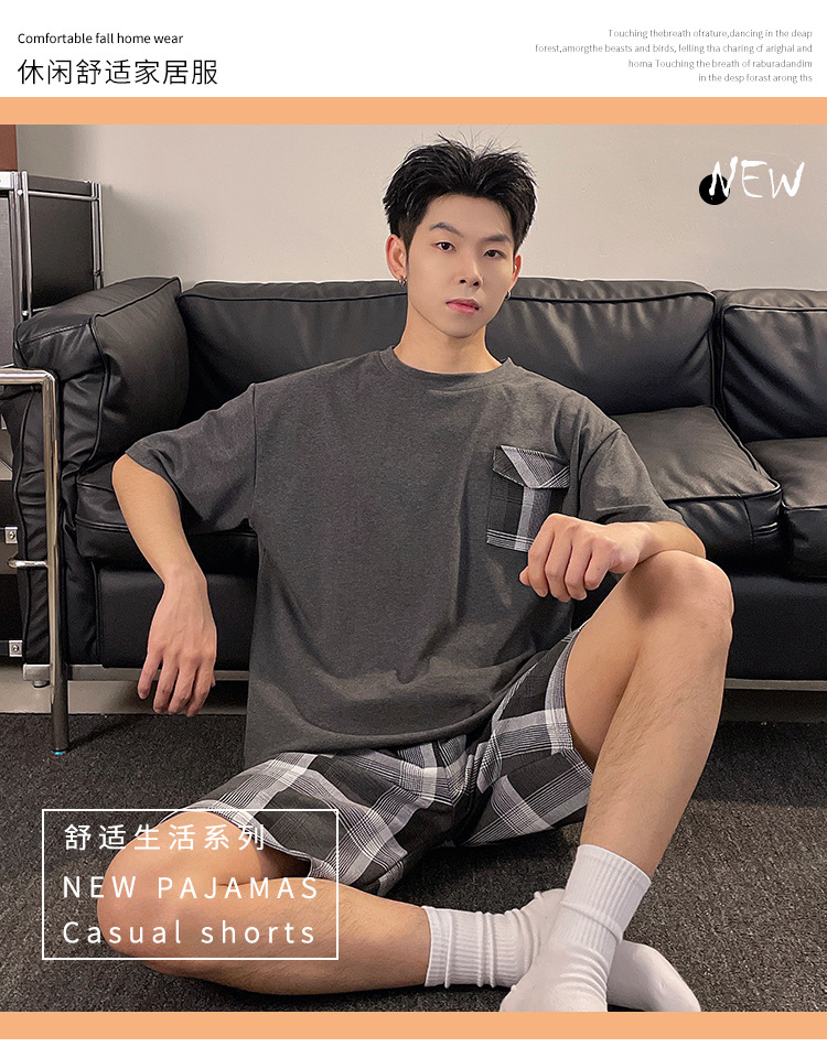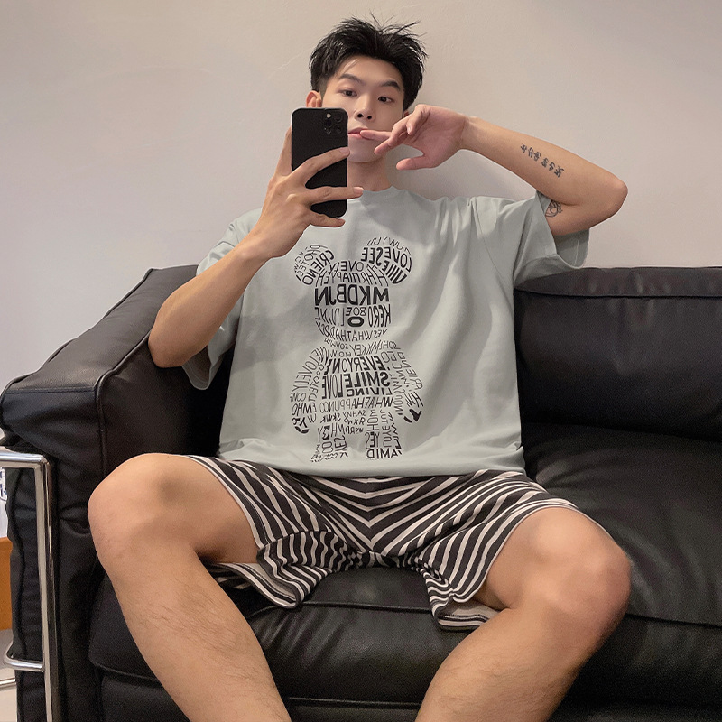국경 간 남성 잠옷 여름 새로운 도착 6535 면 반팔 반바지 느슨한 캐주얼 대형 홈 의류