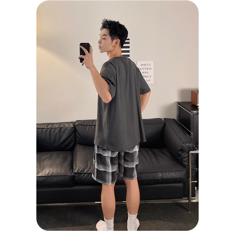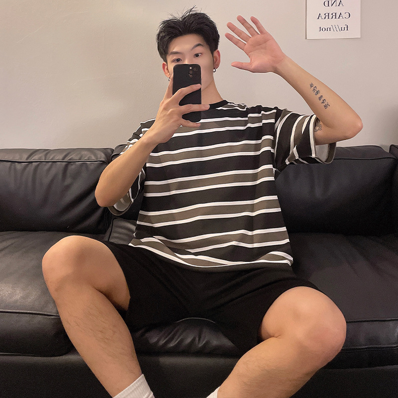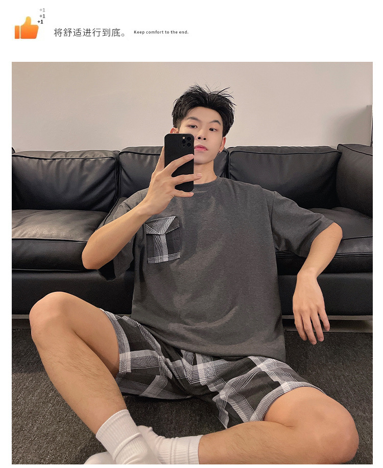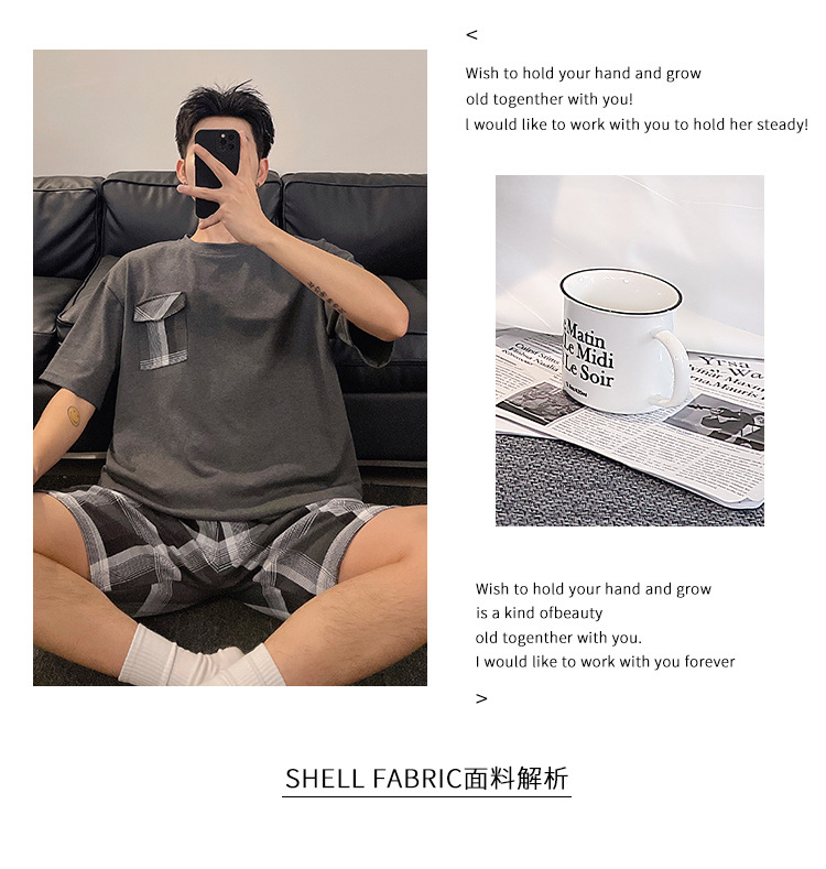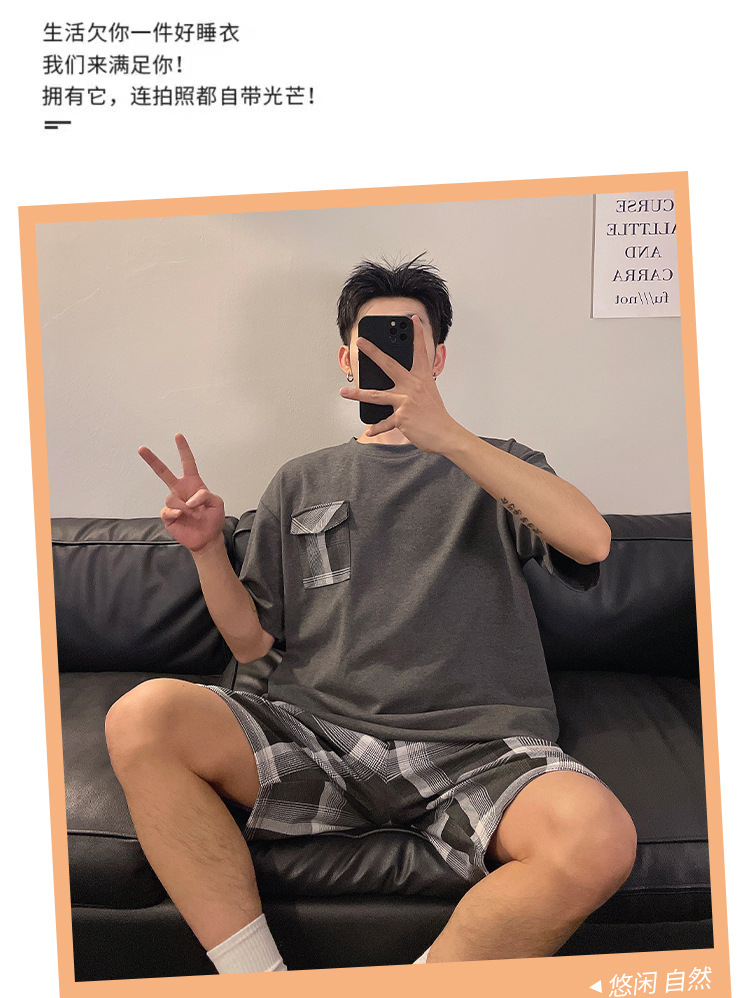 국경 간 남성 잠옷 여름 새로운 도착 6535 면 반팔 반바지 느슨한 캐주얼 대형 홈 의류