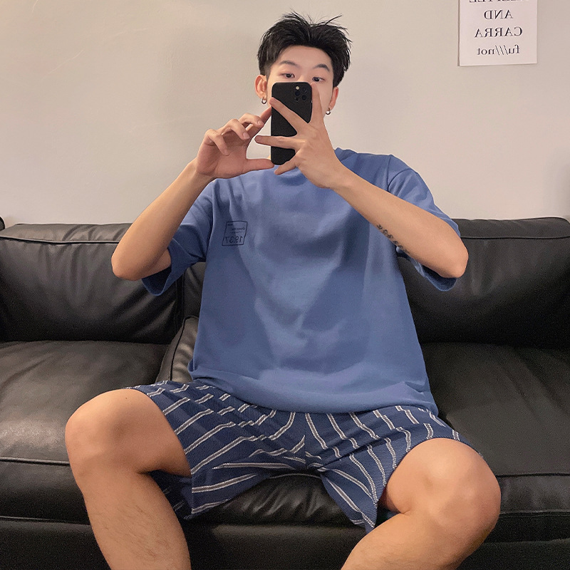 국경 간 남성 잠옷 여름 새로운 도착 6535 면 반팔 반바지 느슨한 캐주얼 대형 홈 의류스토어 가기