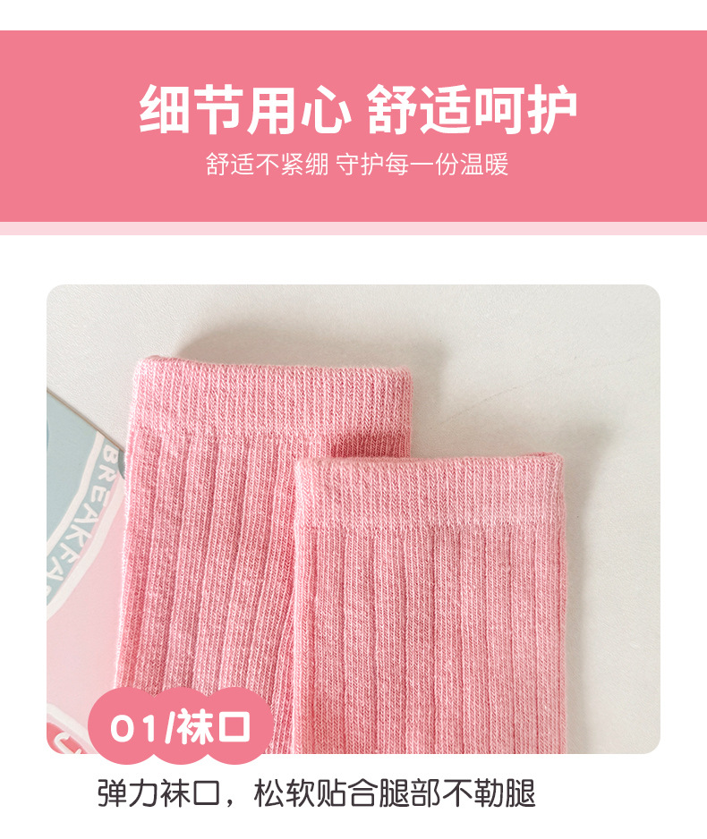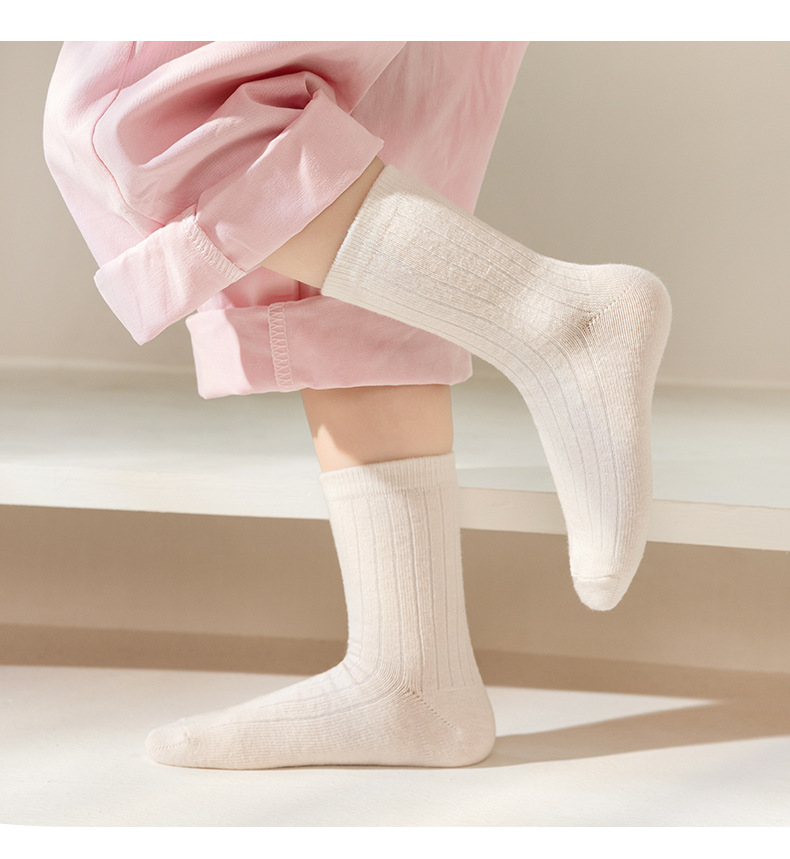 2024 베스 코어 어린이 양말 봄과 여름 얇은 단색 세로 줄무늬 중반 종아리 면화 양말 소녀 한국 스포츠 양말 도매