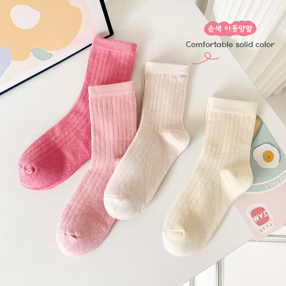 2024 베스 코어 어린이 양말 봄과 여름 얇은 단색 세로 줄무늬 중반 종아리 면화 양말 소녀 한국 스포츠 양말 도매스토어 가기