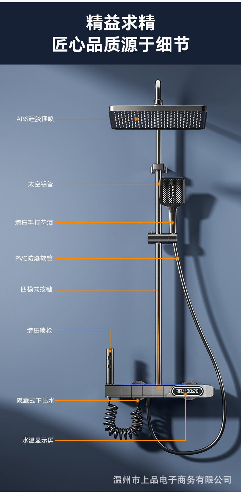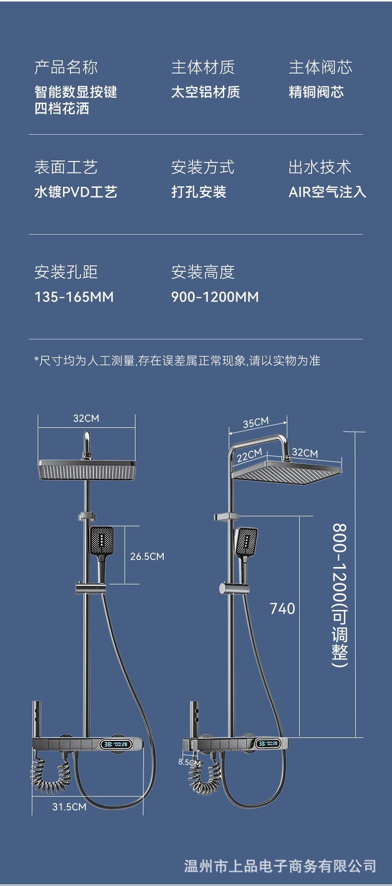 샤워 샤워 세트 가정용 욕실 총 회색 샤워 욕실 디지털 디스플레이 샤워 노즐 제조 업체 도매
