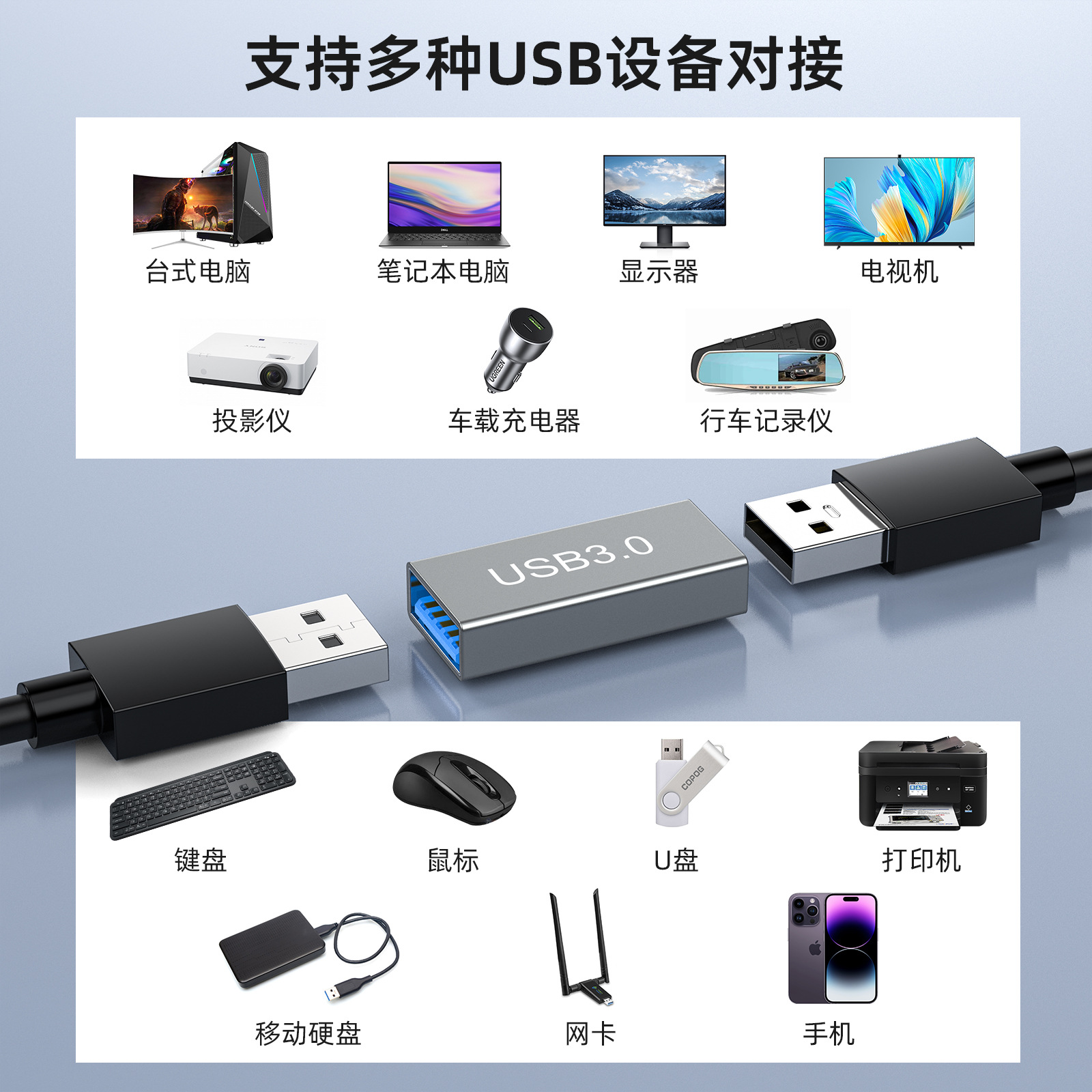 Usb3.0 여성 데이터 케이블 어댑터 usb 듀얼 여성 인터페이스 커넥터 usb extender 5Gbps스토어 가기