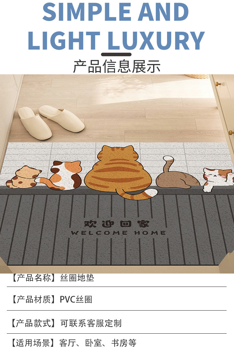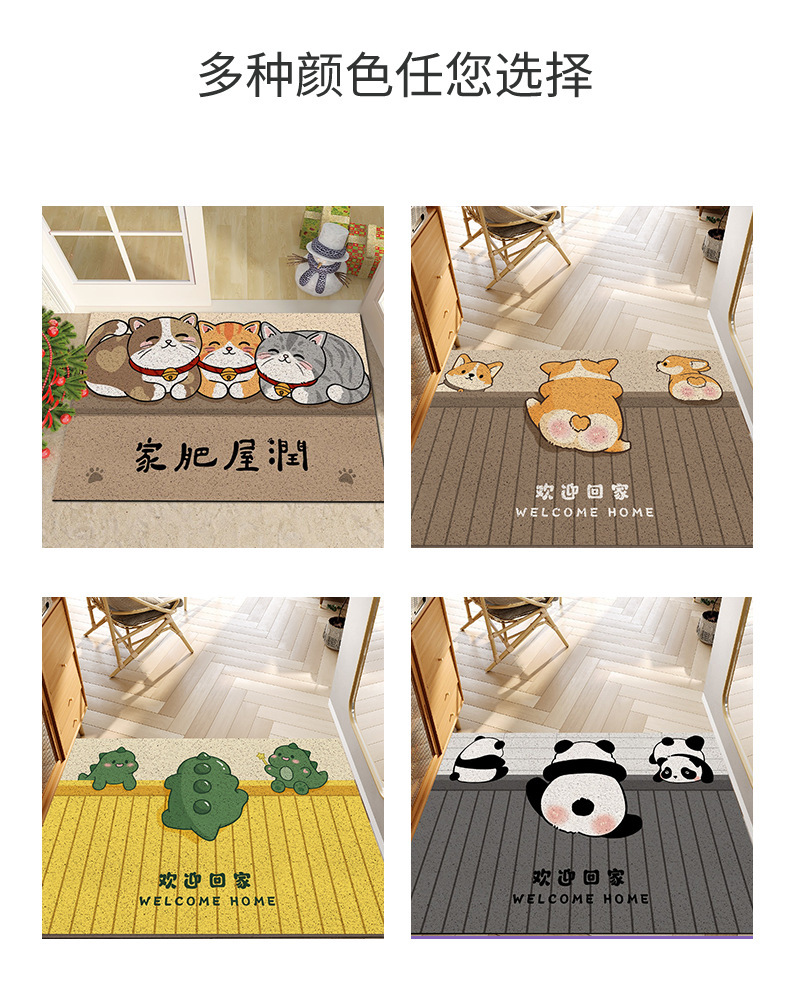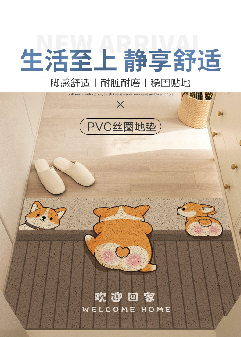 만화 스타일 작은 코기 입구 문 먼지 제거 내마모성 바닥 매트 입구 문 긁는 진흙 문지르는 토양 절단 와이어 링 바닥 매트