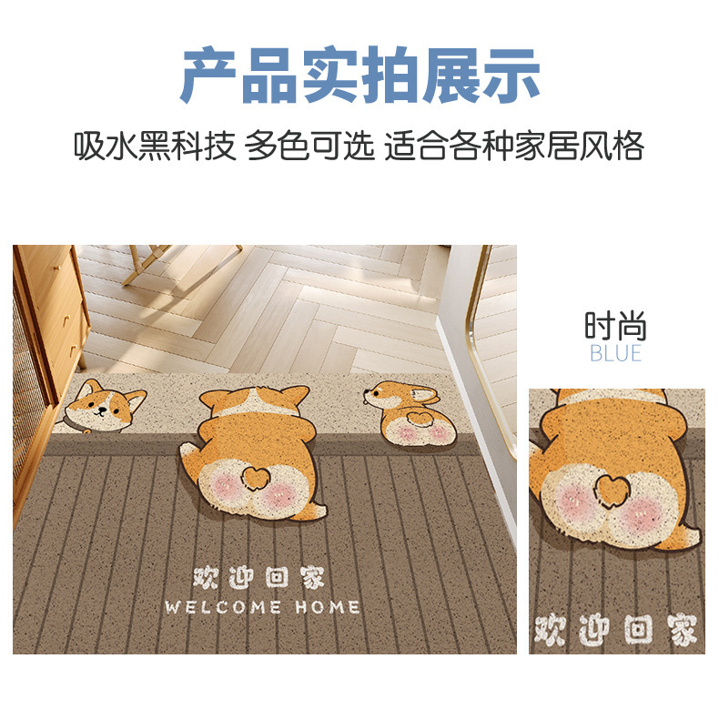 만화 스타일 작은 코기 입구 문 먼지 제거 내마모성 바닥 매트 입구 문 긁는 진흙 문지르는 토양 절단 와이어 링 바닥 매트스토어 가기