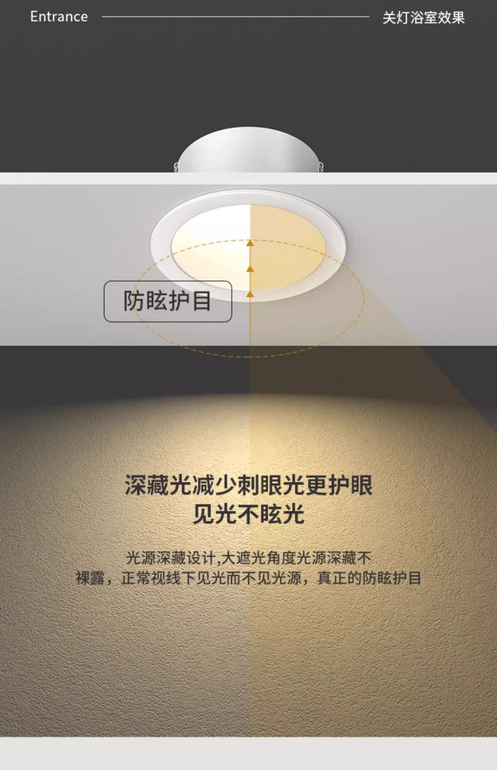 IP65 방수 다운 라이트 눈부심 방지 안개 좁은 프레임 버클 패널 라이트 임베디드 주방 욕실 욕실 천장 조명스토어 가기