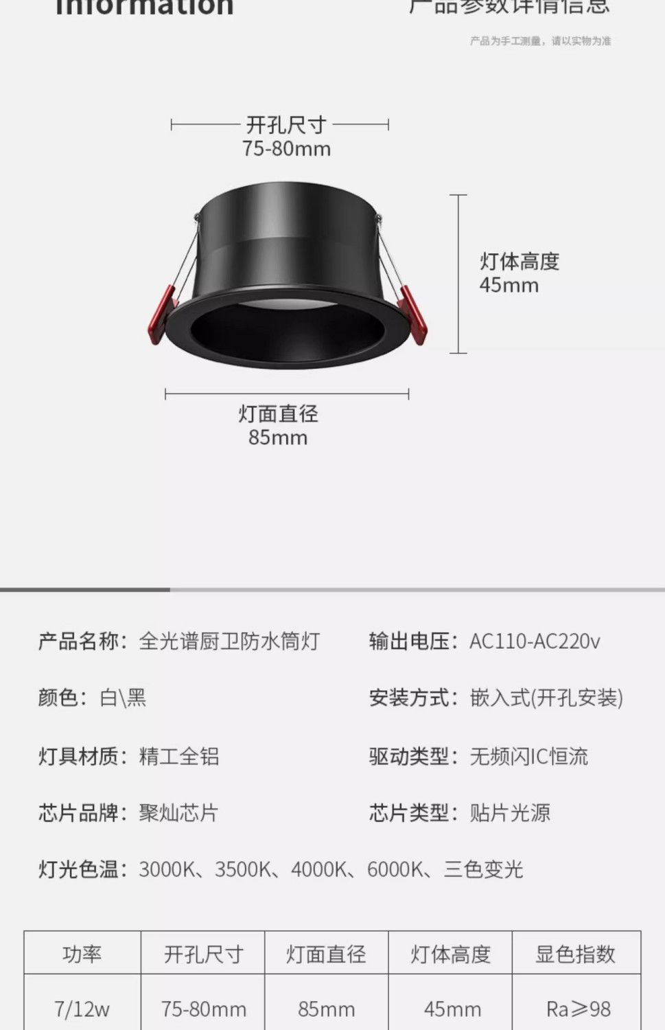 • 연색성 98 7와트(검정색 방수 다운라이트)