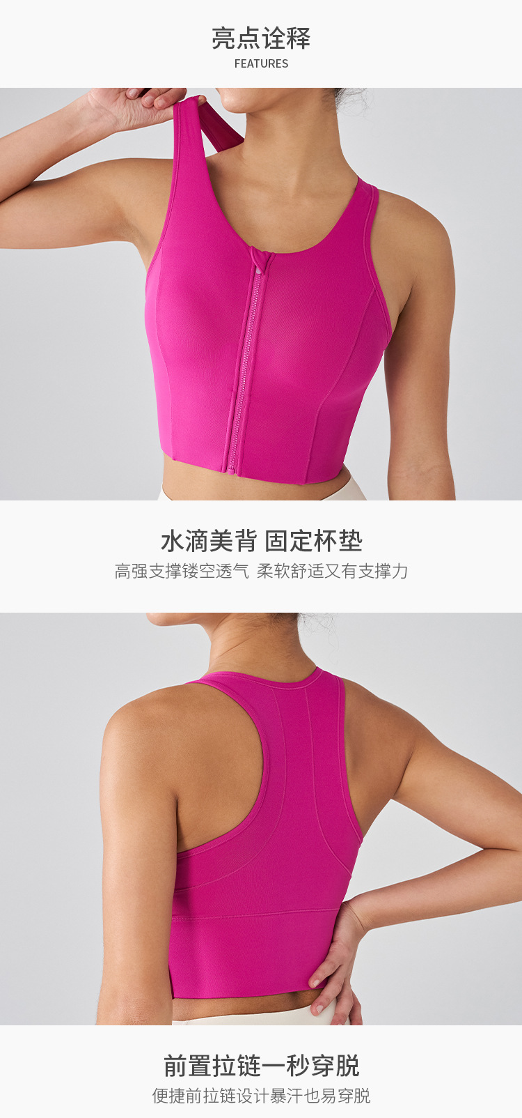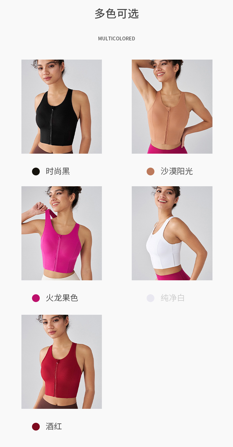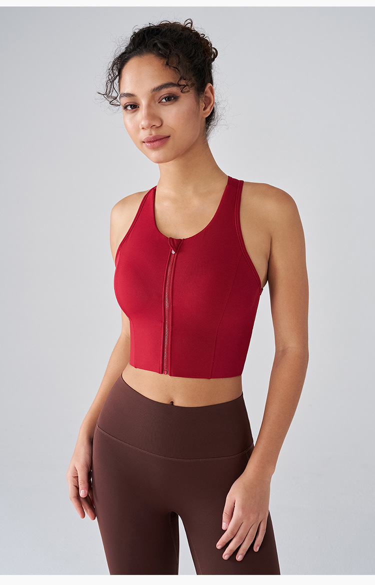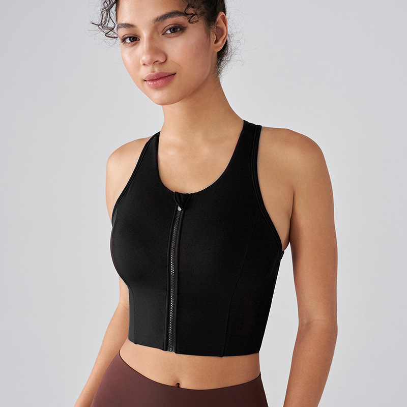 전면 지퍼 스포츠 속옷 여성용 라이크라 항균 고강도 피트니스 브래지어 충격 방지 러닝 통합 요가 조끼