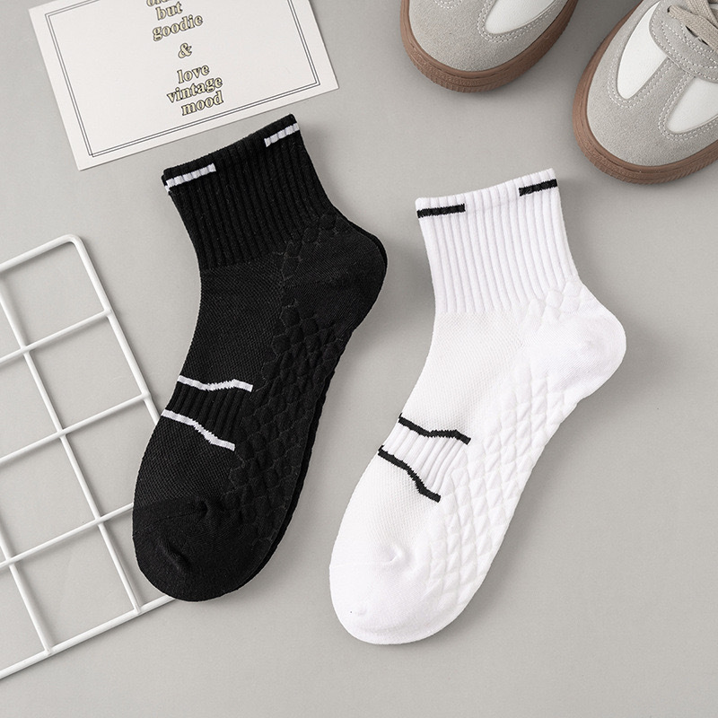 양말 남성과 여성의 동일한 중간 송아지 단색 통기성 메쉬 흑백 마사지 바닥 땀 흡수 긴 실행 짧은 양말 도매
