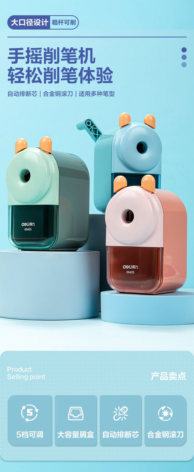 델리 0642s 큰 직경 연필 깎이 조정가능한 두꺼운 학생 연필 깎이 큰 삼각형