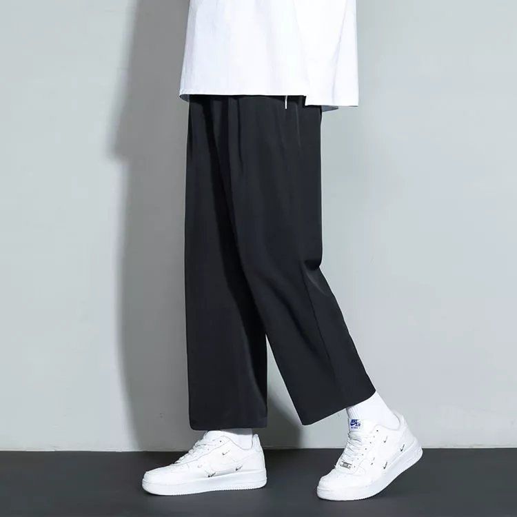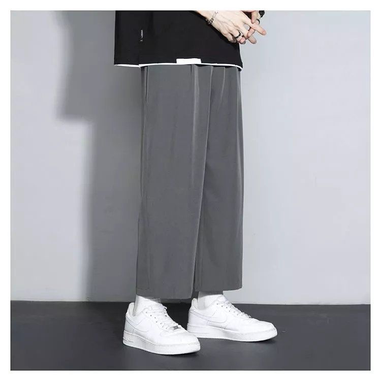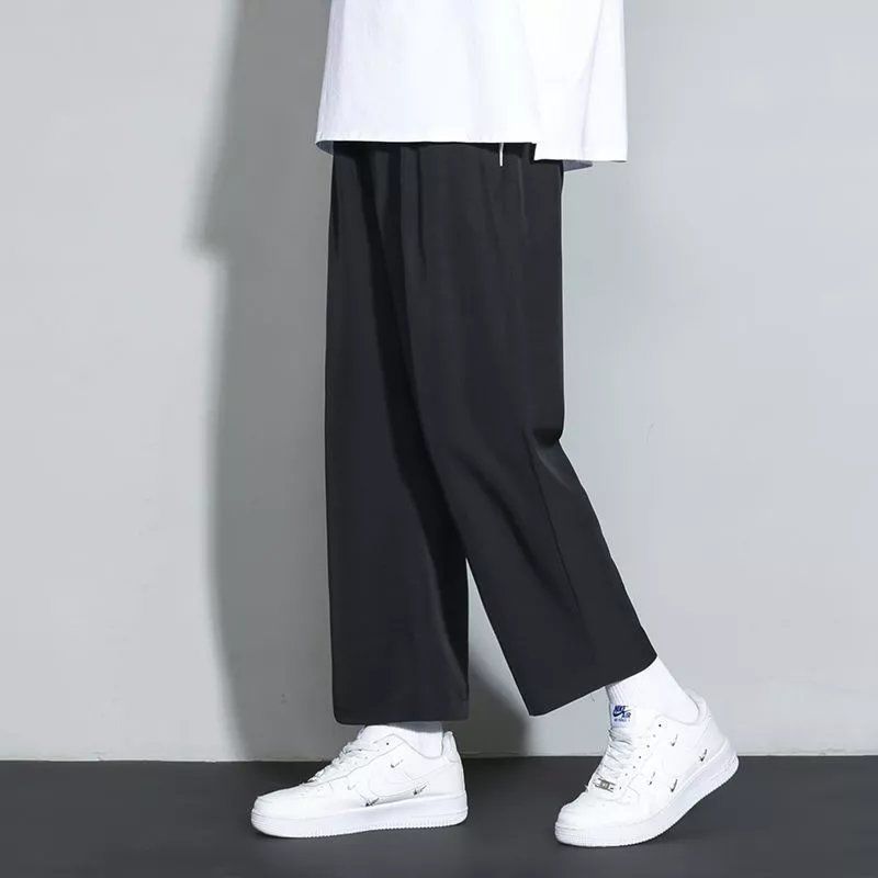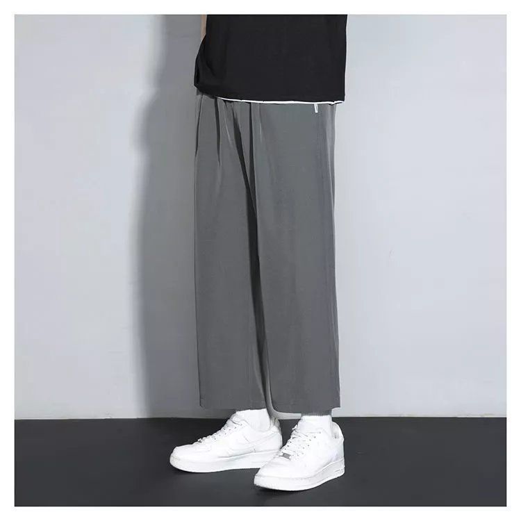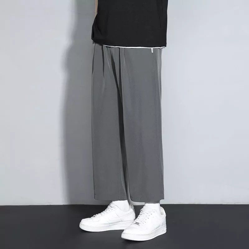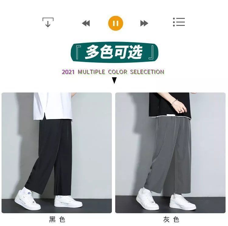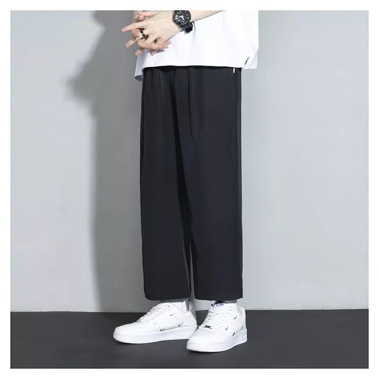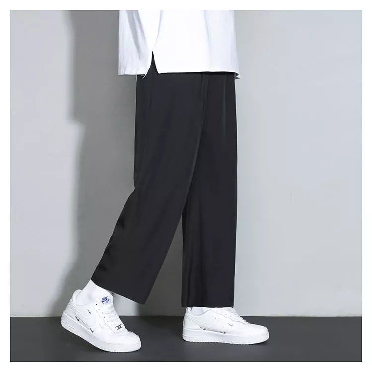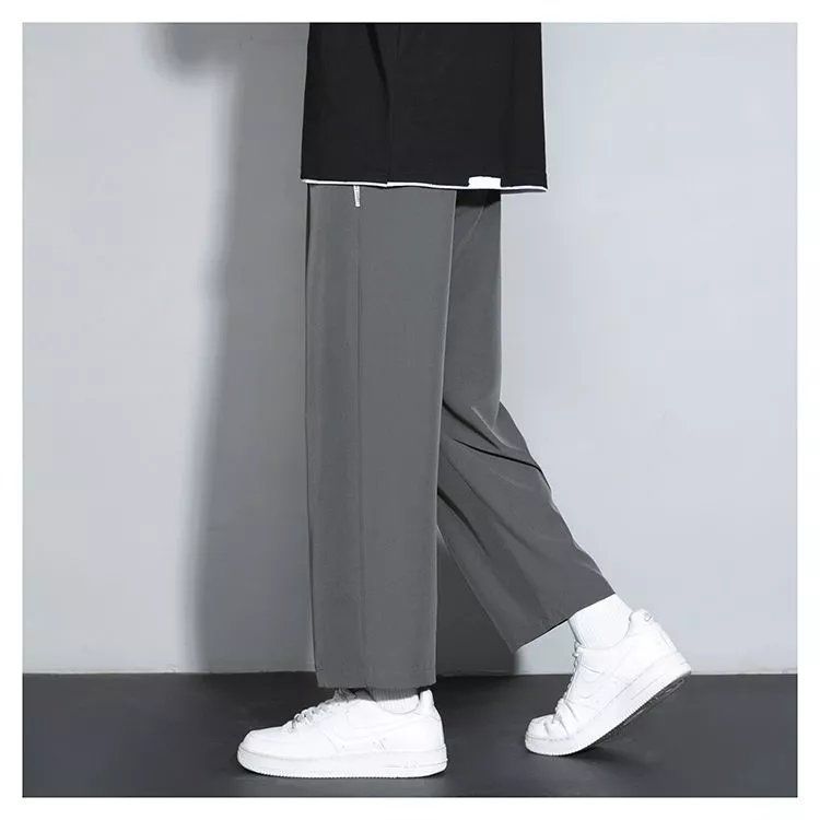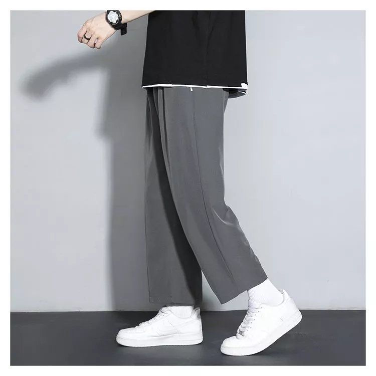느슨한 스트레이트 바지 남자 여름 얇은 아이스 실크 바지 긴 남자 뚱뚱한 플러스 사이즈 아이스 실크 캐주얼 스포츠 바지 유행