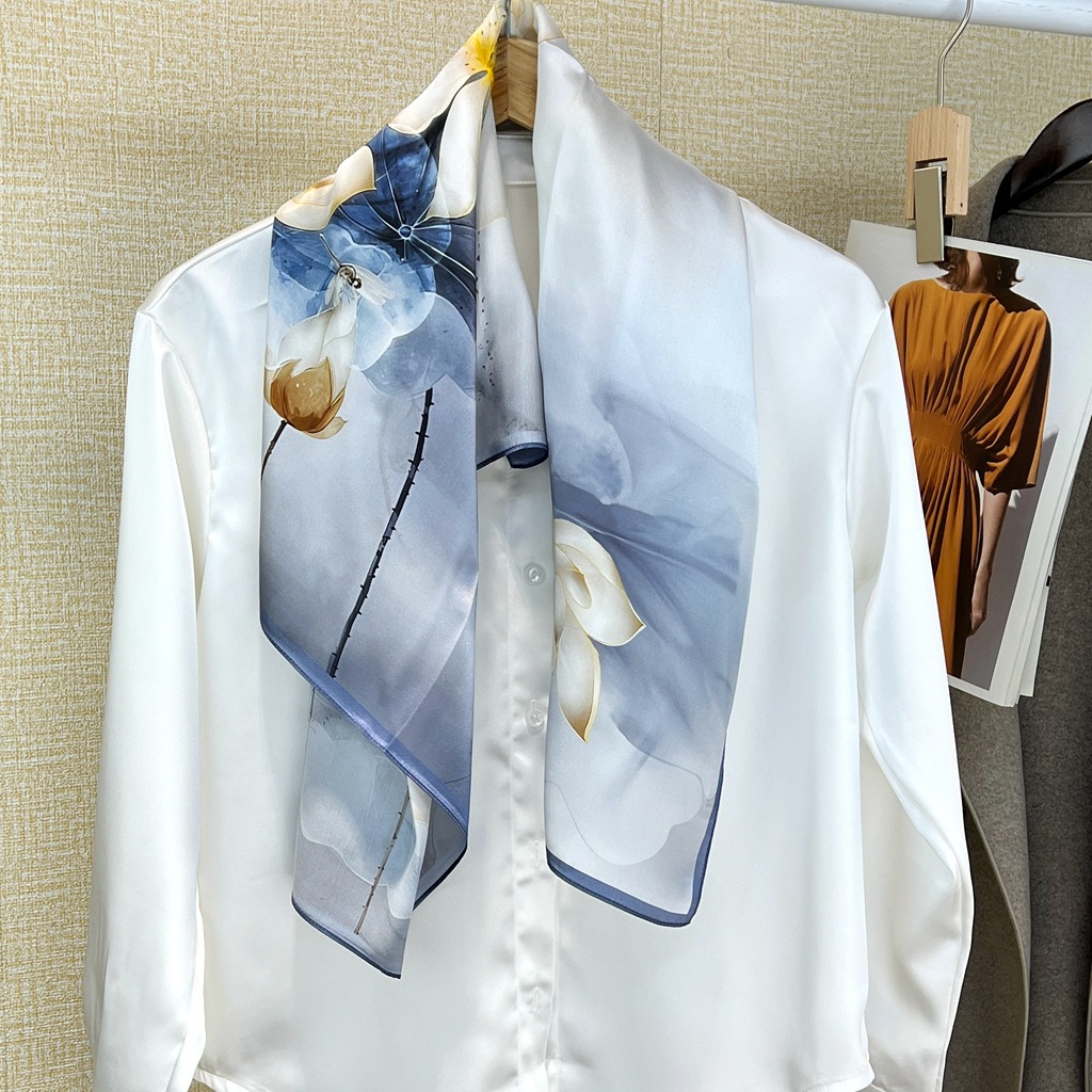 여성 스카프 2024 새로운 봄과 여름 장식 목 사각형 스카프 패션 실크 뽕나무 실크 우아한 목도리 얇은 스카프스토어 가기