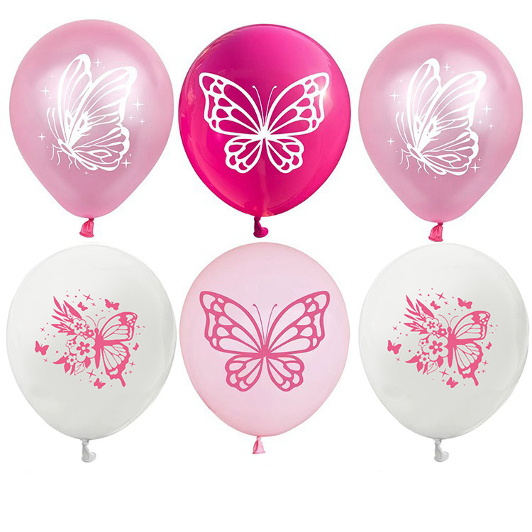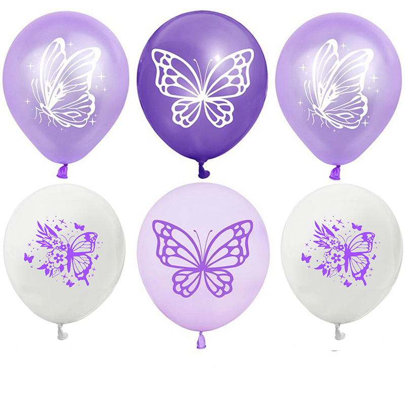 핑크 보라색 나비 테마 생일 파티 장식 라텍스 풍선 결혼식 장면 레이아웃 장식 나비 날개