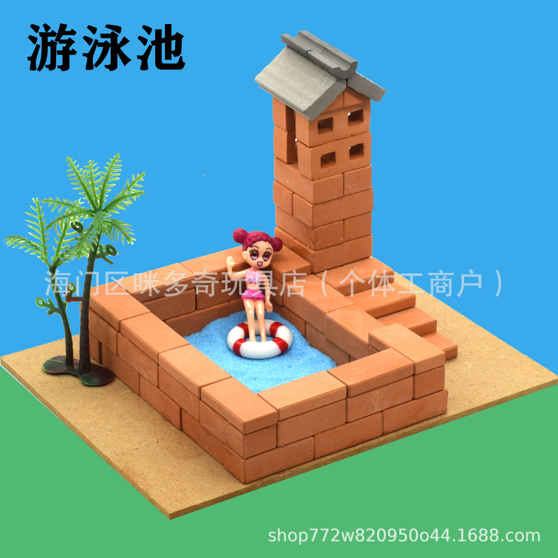 리틀 메이슨 빌딩 블록 장난감 어린이 수제 DIY 빌딩 모델 벽돌 시멘트 빌딩 하우스 수제 샵