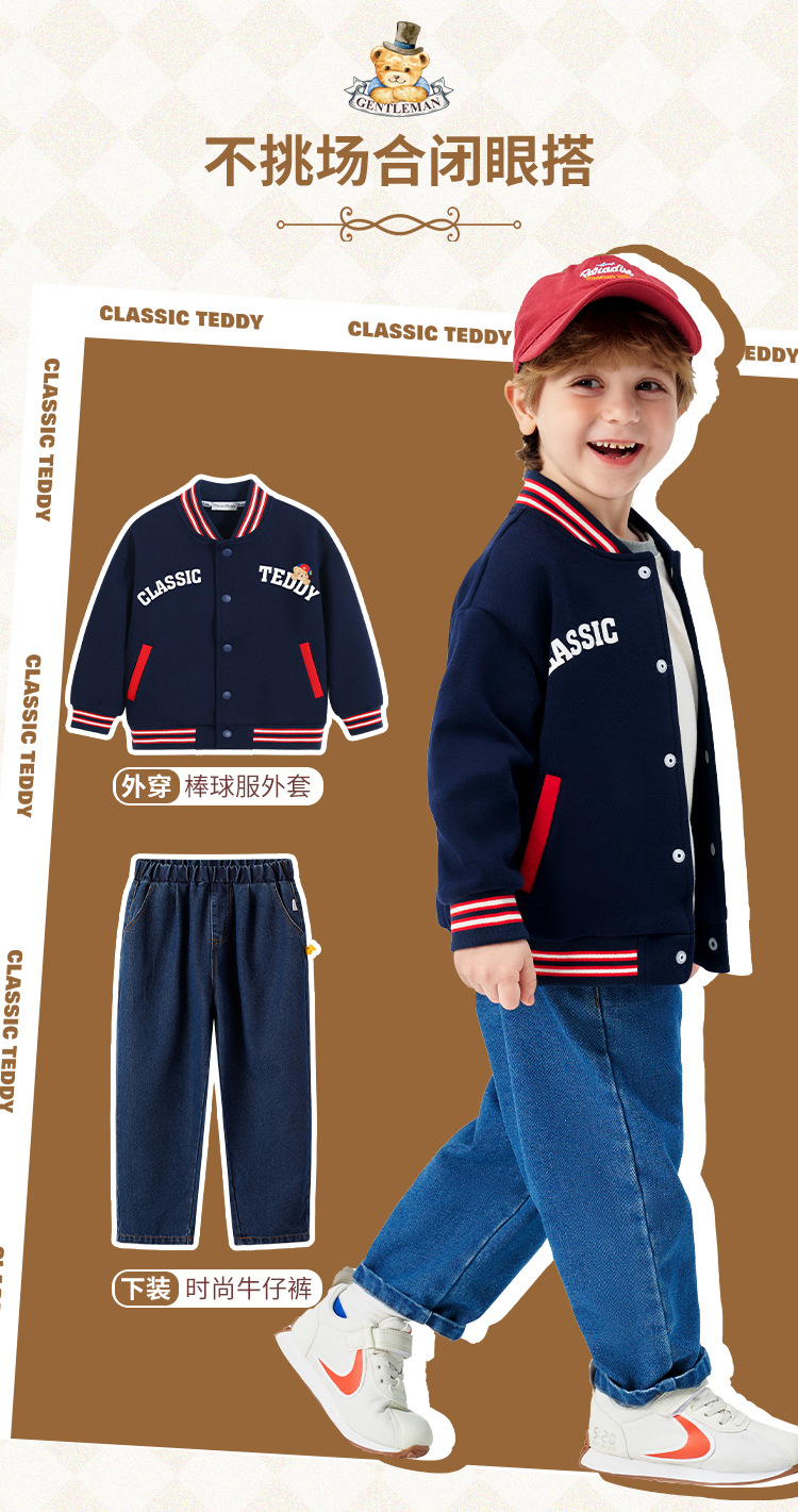 클래식 테디 아동복 소년 재킷 봄 신작 아동 야구 유니폼 아동 재킷 가을 캐주얼상의스토어 가기
