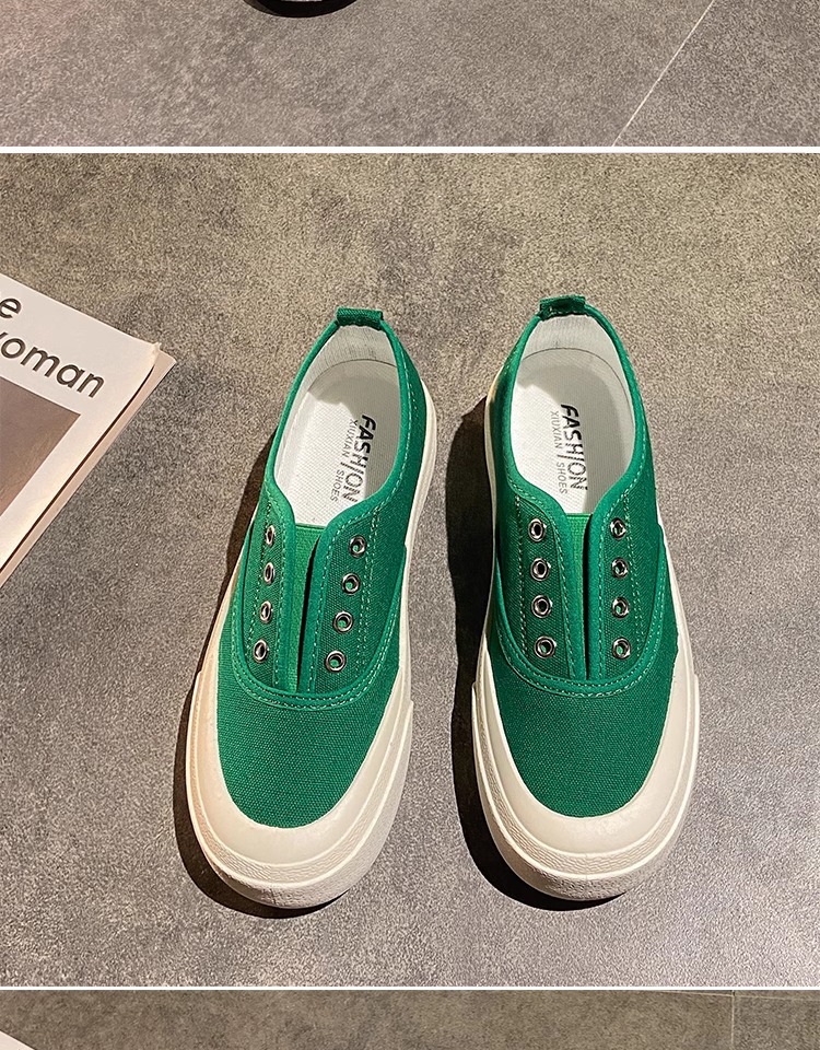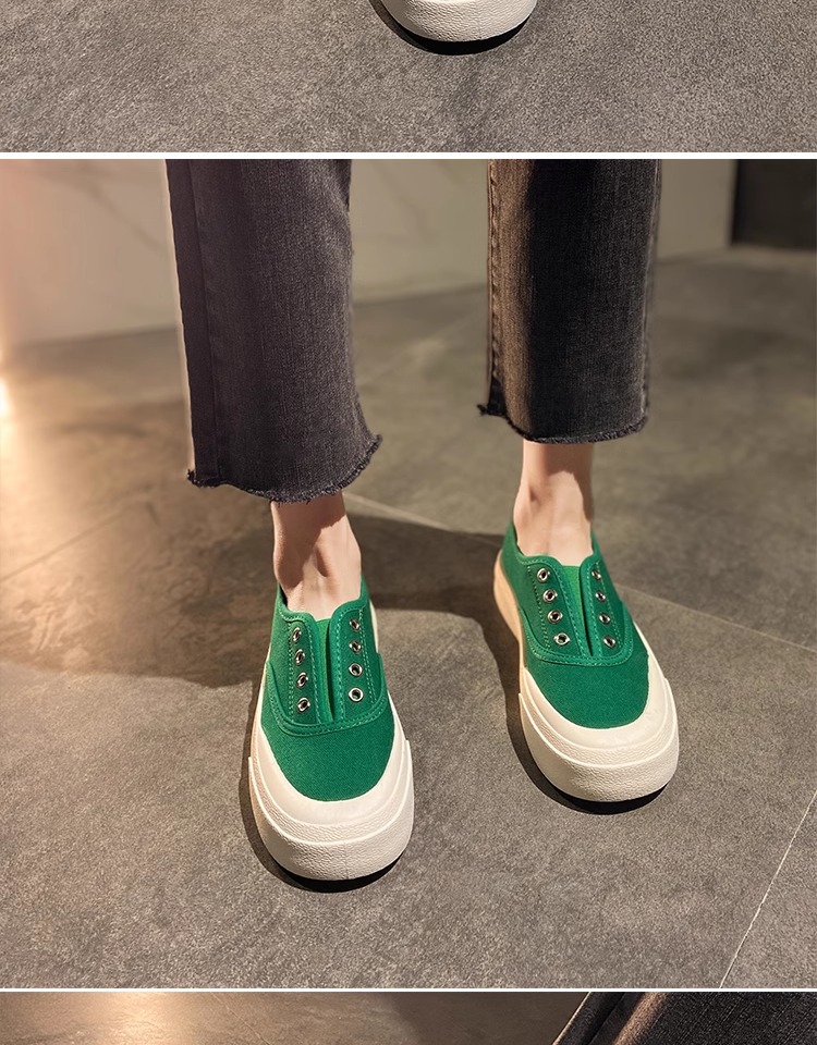 봄 끈이없는 흰색 신발 여성 도매 새로운 슬립 온 게으른 캔버스 신발 두꺼운 밑창 여성 신발 신발 천 신발스토어 가기