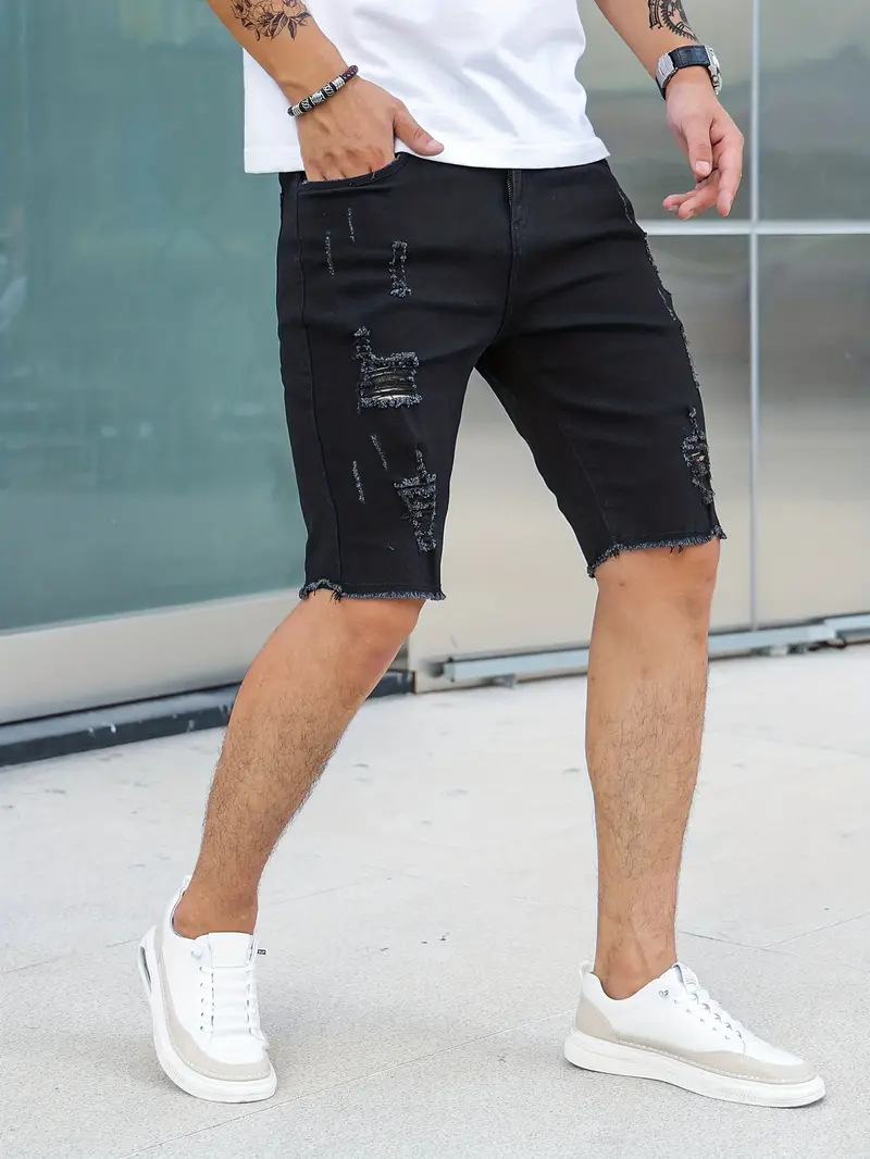국경을 넘는 엄선된 데님 캐주얼 반바지 여름 남성 바지 독립 스테이션 슬림 남성 데님 반바지 5점 구멍