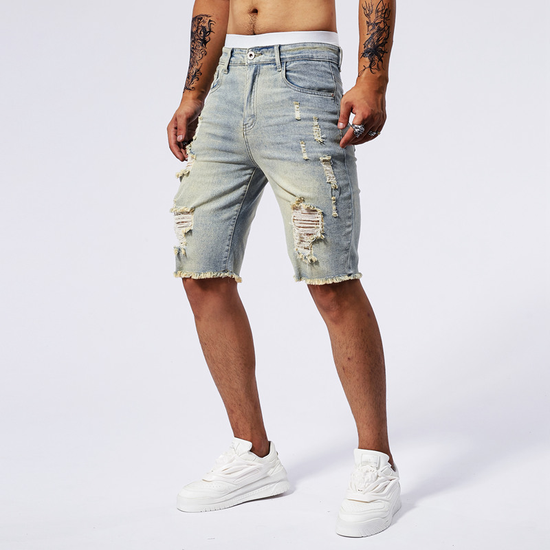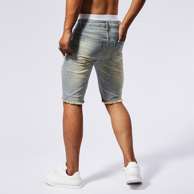국경을 넘는 엄선된 데님 캐주얼 반바지 여름 남성 바지 독립 스테이션 슬림 남성 데님 반바지 5점 구멍스토어 가기