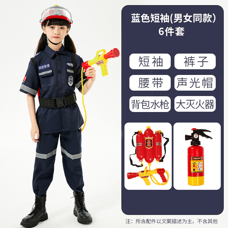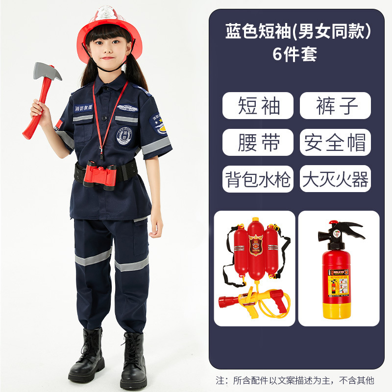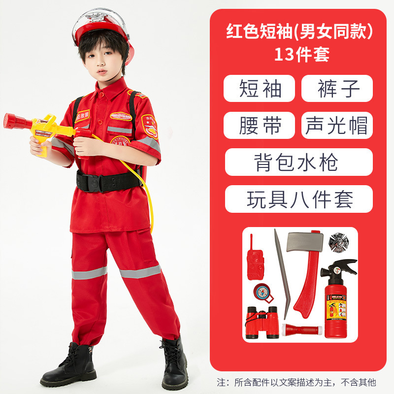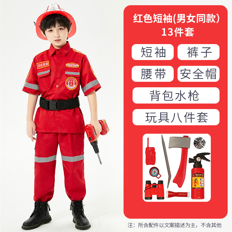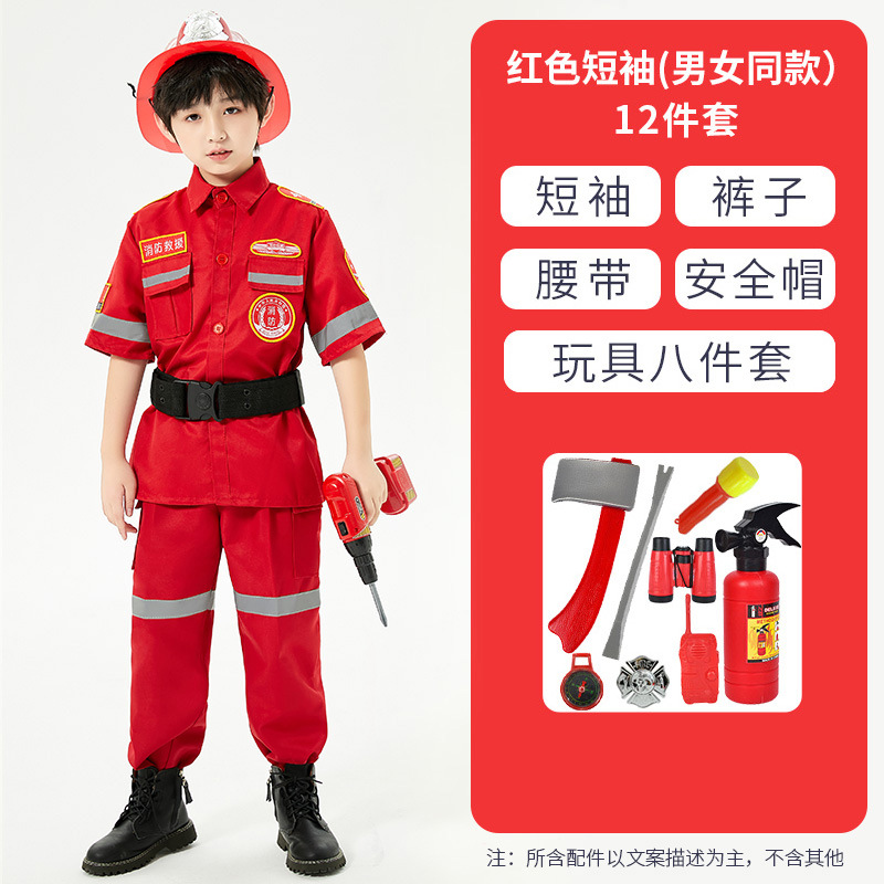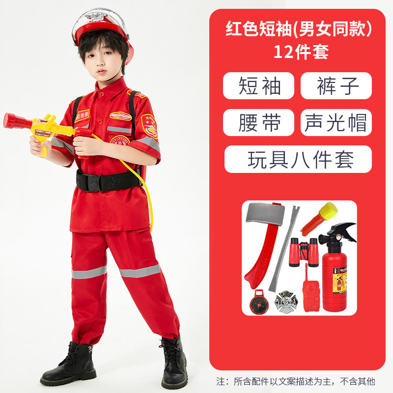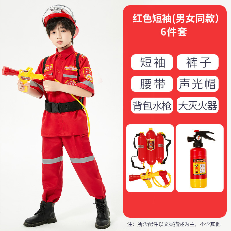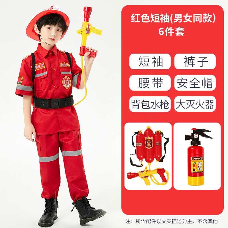 • 새로운 빨간색 반팔 바지 + 벨트 + 안전 헬멧 + 물총 + 대형 소화기