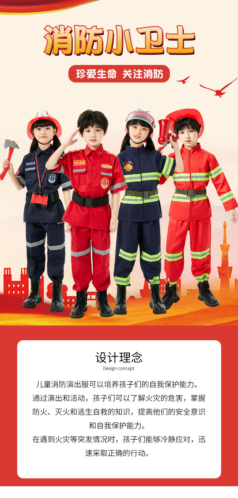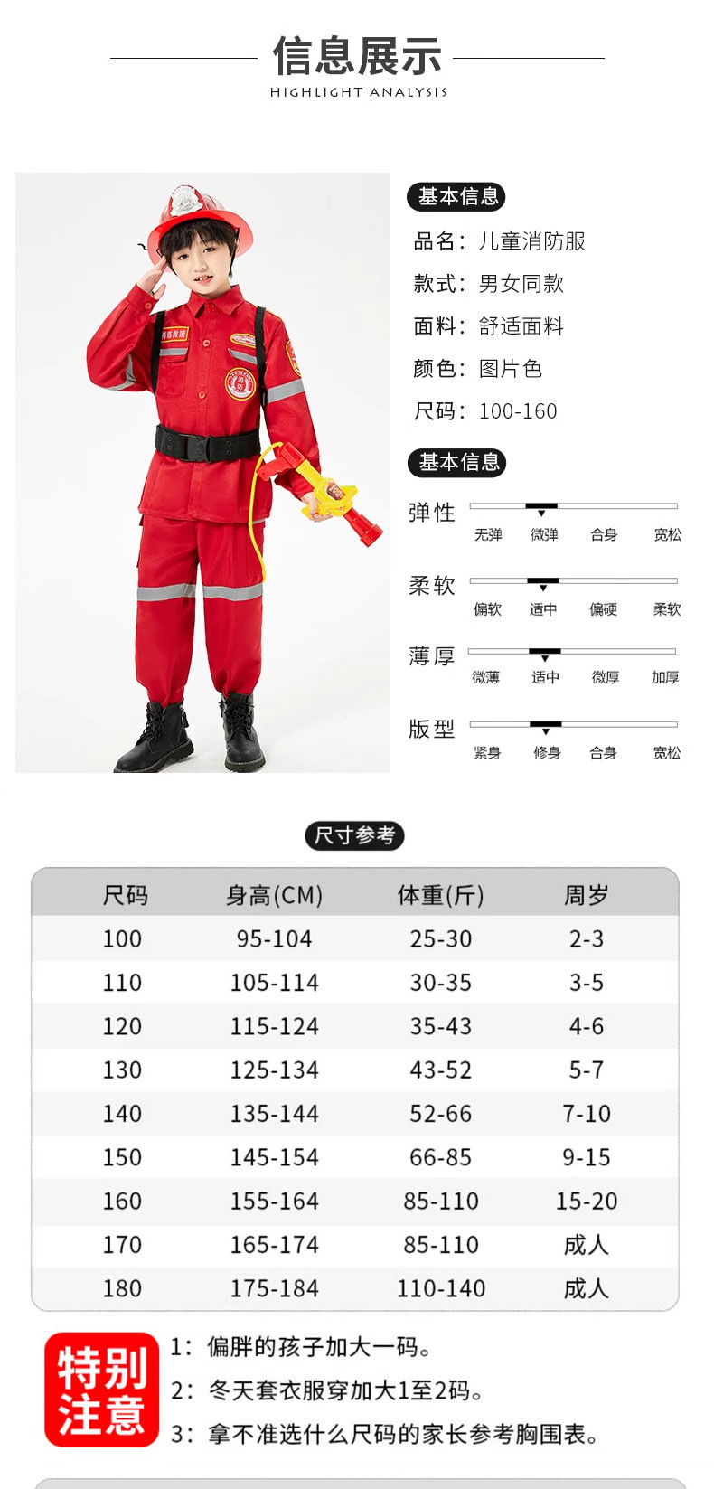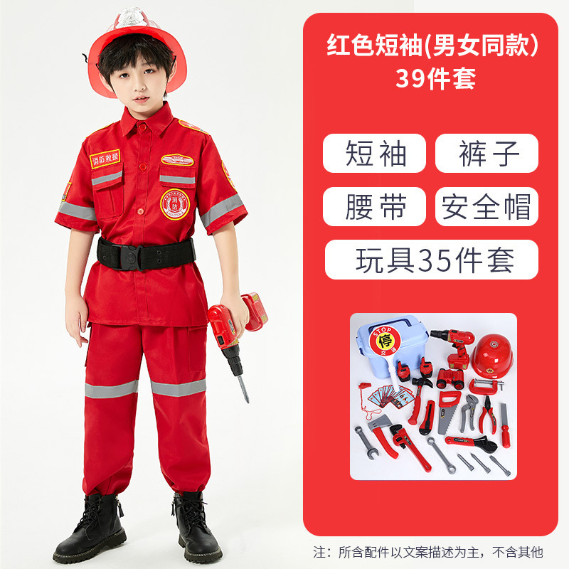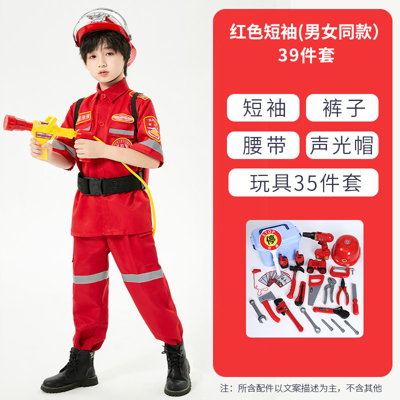어린이 소방관 의상 유치원 직업 역할놀이 의상 어린이 소방관 직업 공연 의상