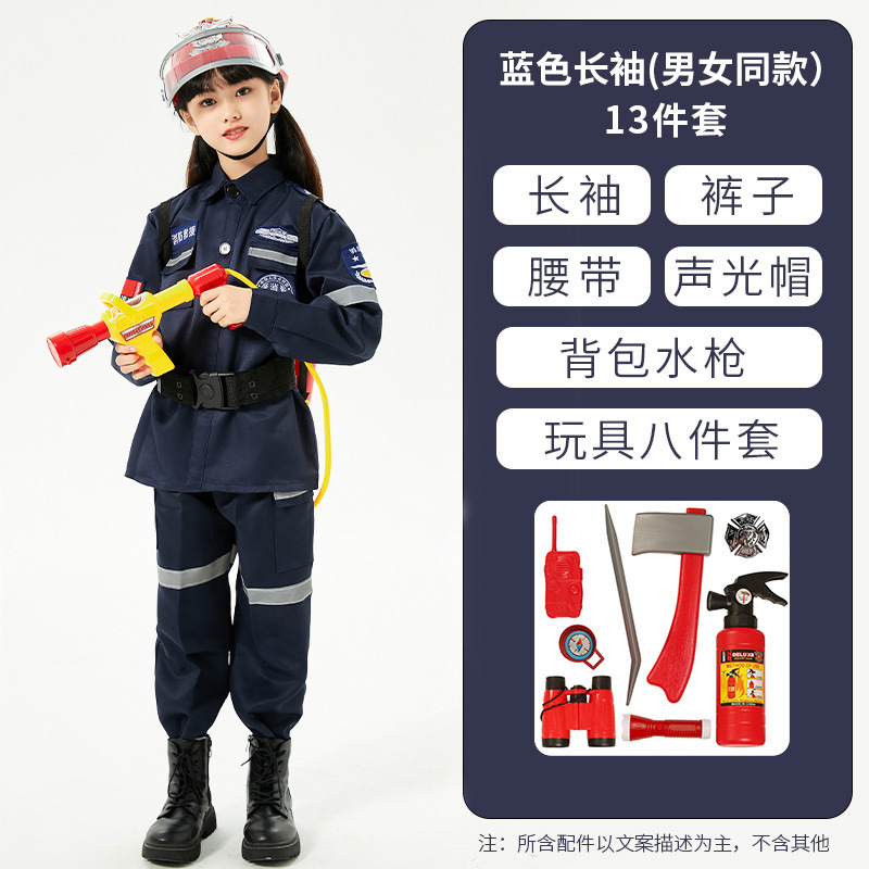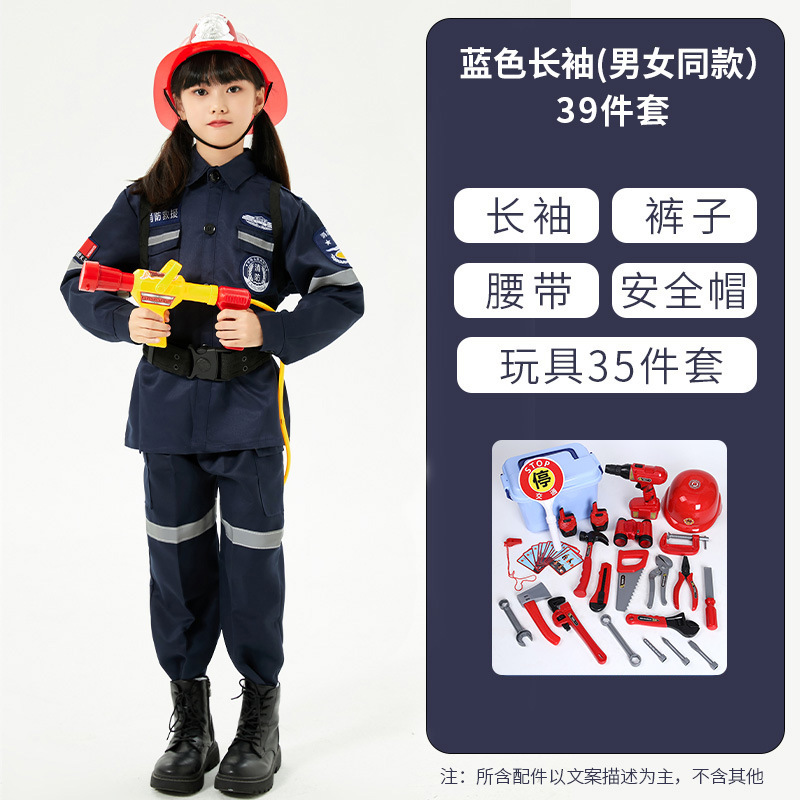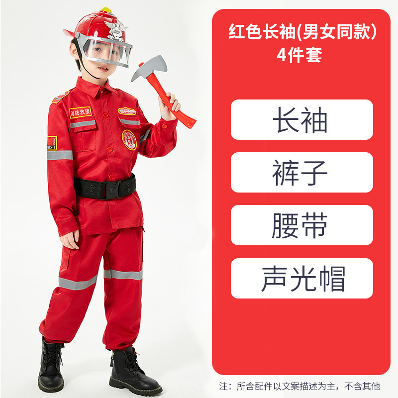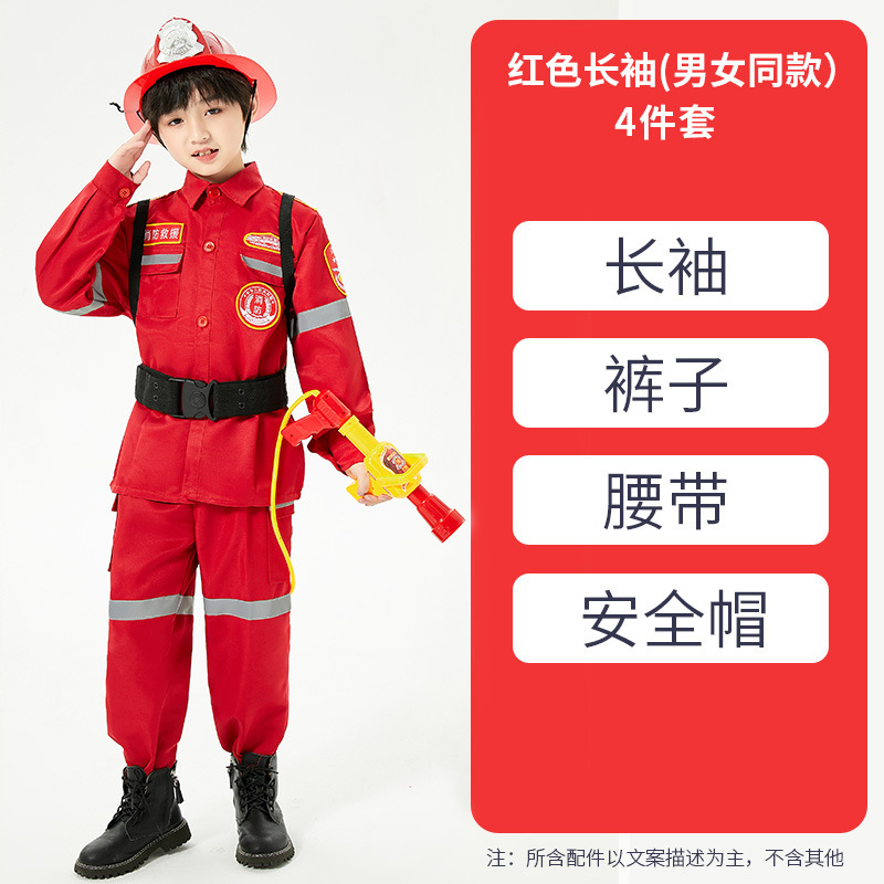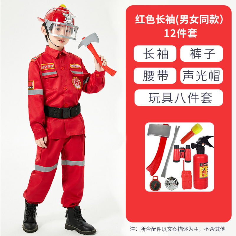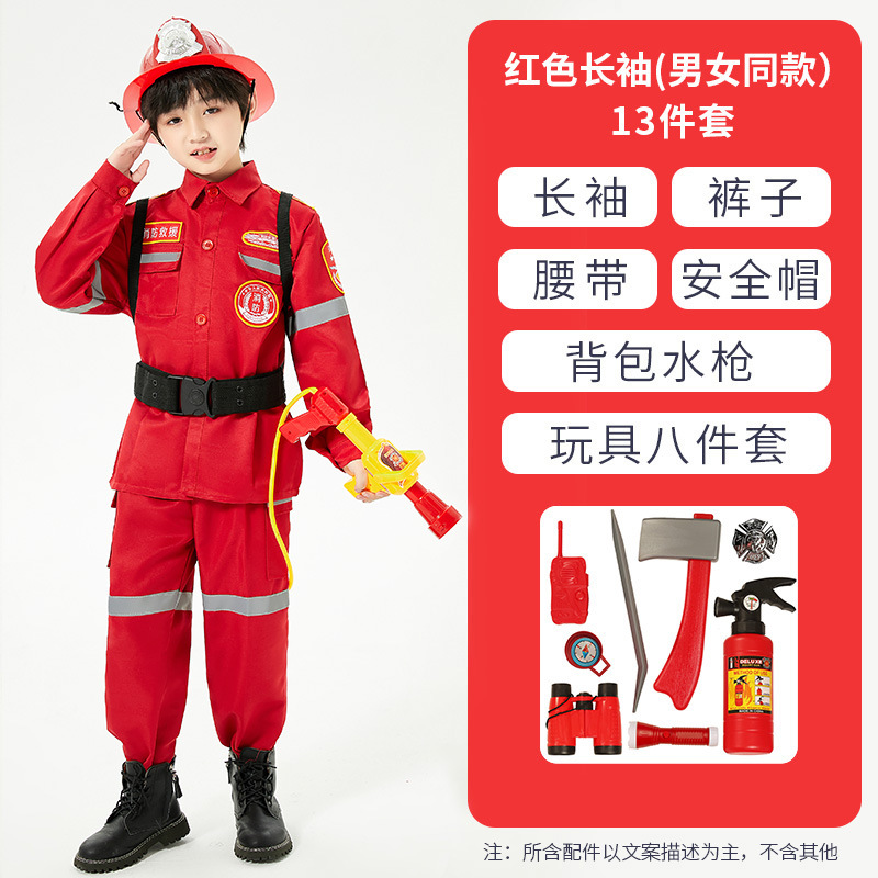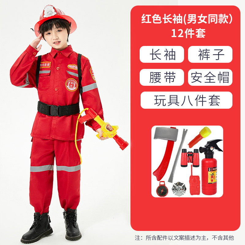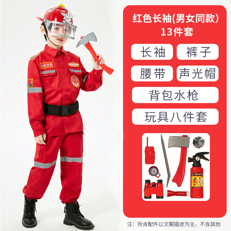 • 뉴 레드 긴팔 바지 + 벨트 + 안전 헬멧 + 장난감 8종 세트 장난감 8종 세트(소형 소화기)