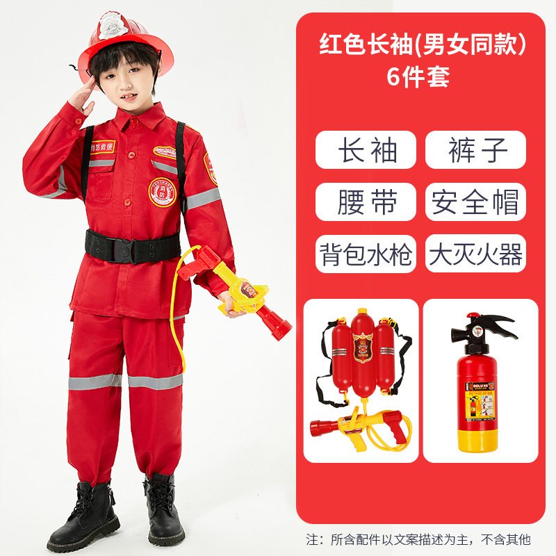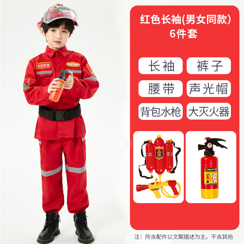 • 새로운 빨간색 긴팔 바지 + 벨트 + 안전 헬멧 + 물총 + 대형 소화기