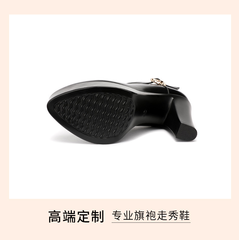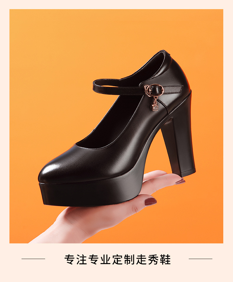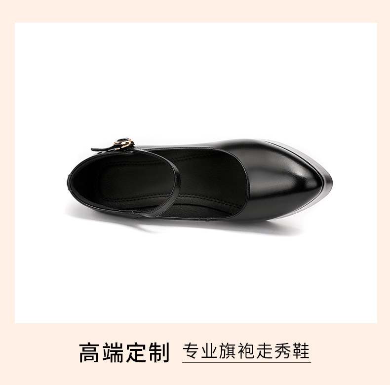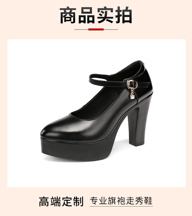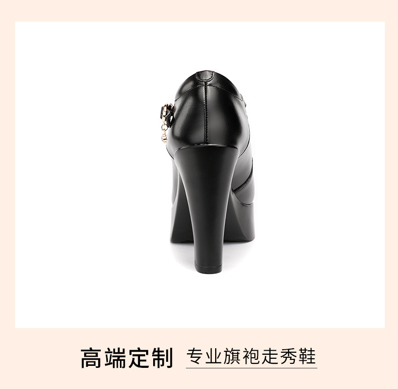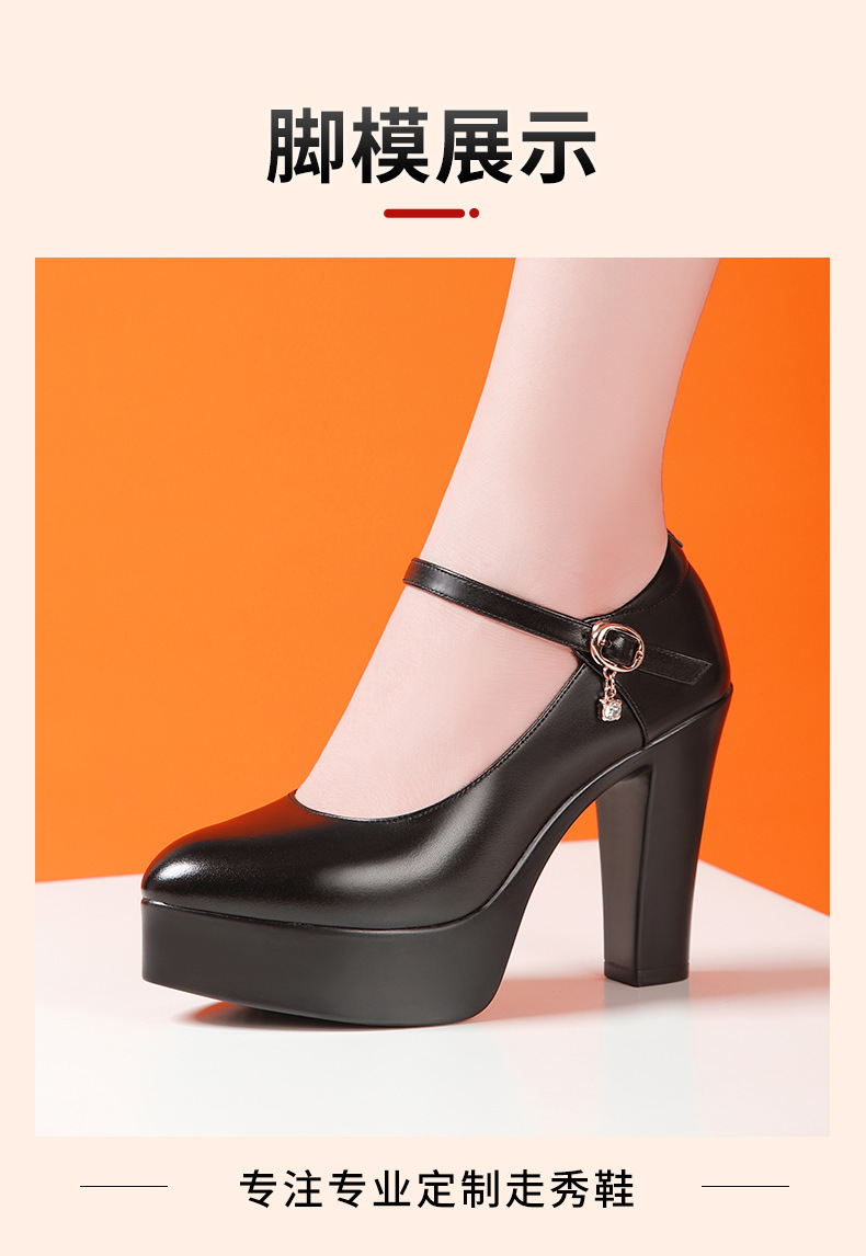 하이힐 두꺼운 힐 플랫폼 여성 신발 청삼 모델 신발 포인팅 블랙 전문 작업 신발 소프트 가죽 쇼 신발 여성스토어 가기